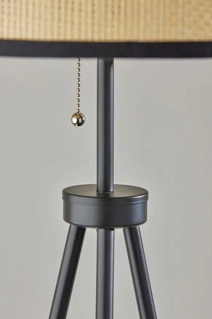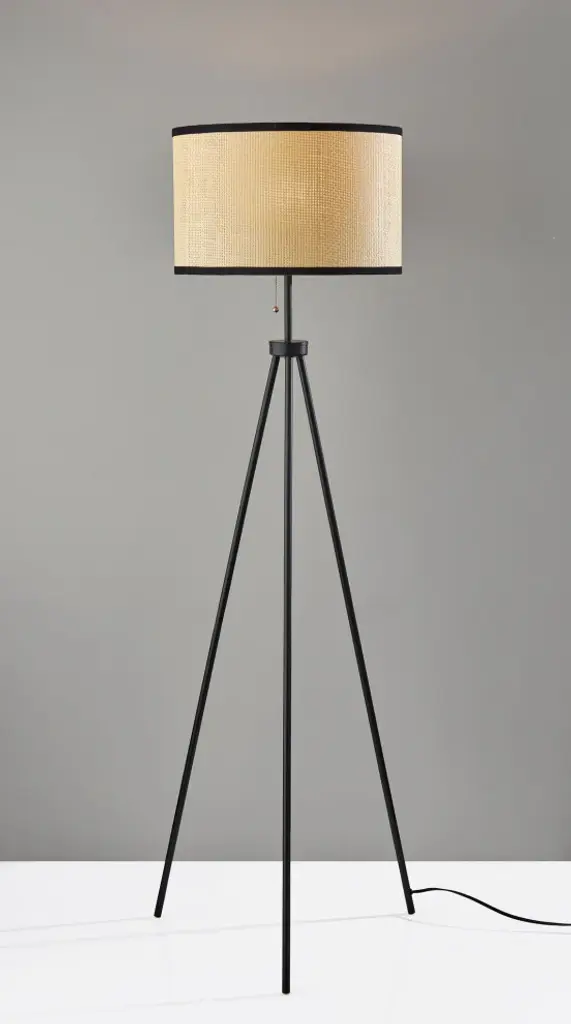 Introducing the 3954-01 Raven Floor Lamp, a striking and versatile lighting fixture that effortlessly marries modern design with natural textures. This floor lamp showcases a sleek Black finish that adds a touch of contemporary elegance to your decor. Its distinctive tripod base not only provides stability but also stands as a captivating design element. Topped with a Natural Woven Paper shade featuring tasteful Black Trim, the Raven Floor Lamp reaches an impressive height of 58.5 inches, making it a statement piece in any room. Equipped with a convenient 3-way rotary socket switch, this lamp offers both style and adaptability, allowing you to adjust the illumination to suit your preferences and activities.Designed to seamlessly integrate into your decor, this floor lamp brings a modern edge while providing soft and diffused lighting. The Raven Floor Lamp is a sophisticated choice for enhancing the ambiance and visual allure of your interior.Contemporary Elegance: The 3954-01 Raven Floor Lamp boasts a Black finish that infuses contemporary elegance and sleek aesthetics into your decor.Eye-Catching Tripod Base: Featuring a unique tripod base, this lamp not only ensures stability but also serves as a visual centerpiece that enhances the overall aesthetics of your space.Natural Textured Shade: Topped with a Natural Woven Paper shade accented with Black Trim, this lamp masterfully combines modern design with natural textures, adding warmth and character to your interior.Impressive Height: Standing at an impressive 58.5 inches, the Raven Floor Lamp adds vertical interest to your space while delivering adjustable illumination for various activities.Versatile Lighting: Equipped with a 3-way rotary socket switch, this lamp offers versatile lighting options, allowing you to customize the brightness to suit different moods and tasks, from reading to creating a cozy ambiance.