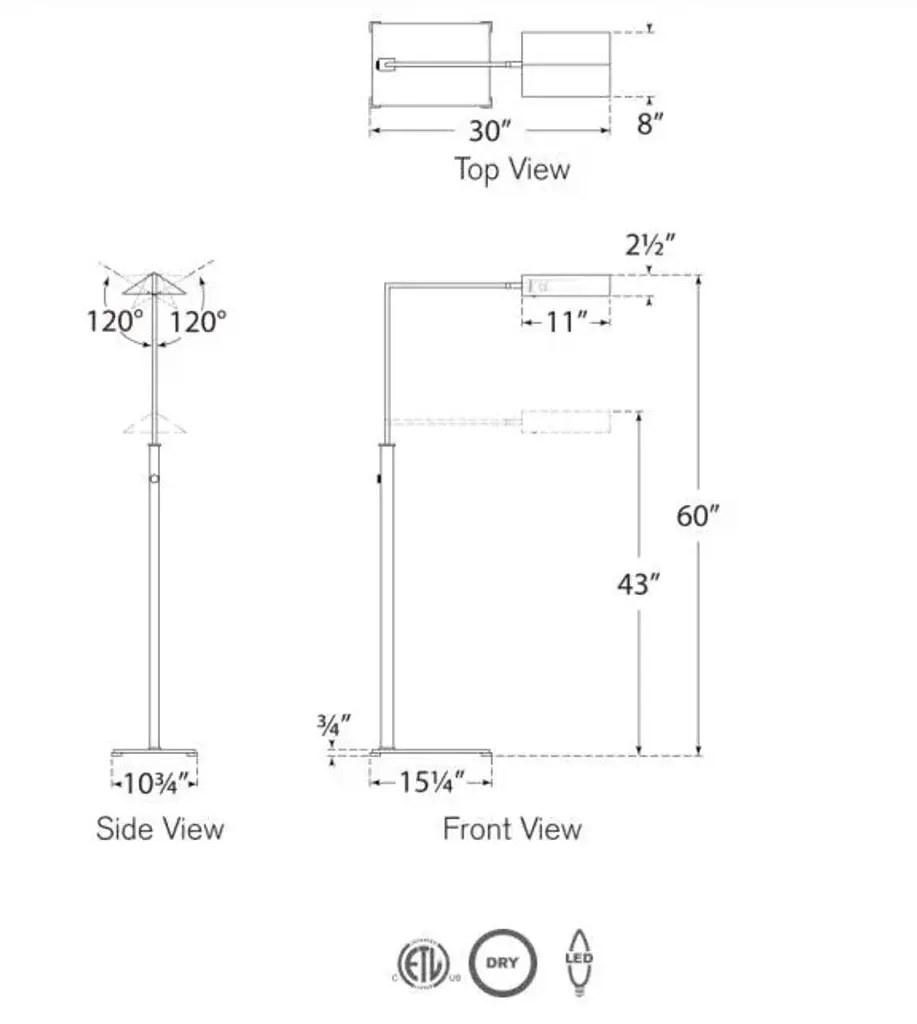 Combining form and function, Ray Booth's Copse showcases the warmth of wood with the strength of metal. The simple, geometric silhouette will make a modern statement on any desktop. Adjustable in height, the Medium Pharmacy Desk Lamp can be lowered or extended as needed. Designer: Ray Booth Height: 43" - 60" Extension: 30" Base: 10.75" x 15.25" Rectangle Socket: E26 Dimmer Wattage: 6.5 LED B11 Safety Rating Location: DRY Assembly Required? Yes