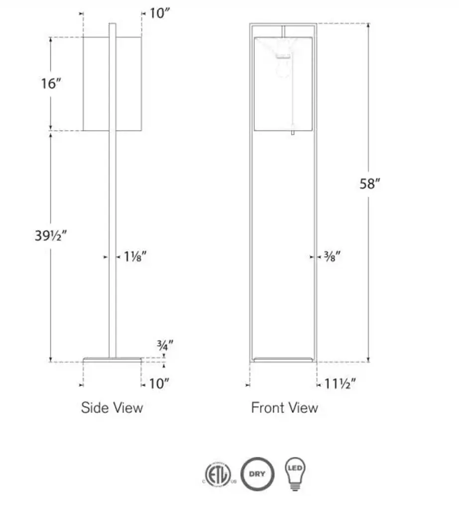 Zenz Medium Floor Lamp in Warm Iron and Dark Walnut with Linen Shade Designer: Ray Booth Height: 58" Shade Detail: 10" x 10" x 16" Base: 10" x 11.5" Decorative Socket: E26 Pull Chain Wattage: 15 LED A19 Safety Rating Location: DRY Assembly Required? Yes