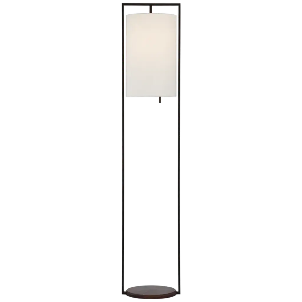 Ray Booth For Visual Comfort Signature Zenz Medium Floor Lamp In Warm Iron And Dark Walnut With Linen Shade