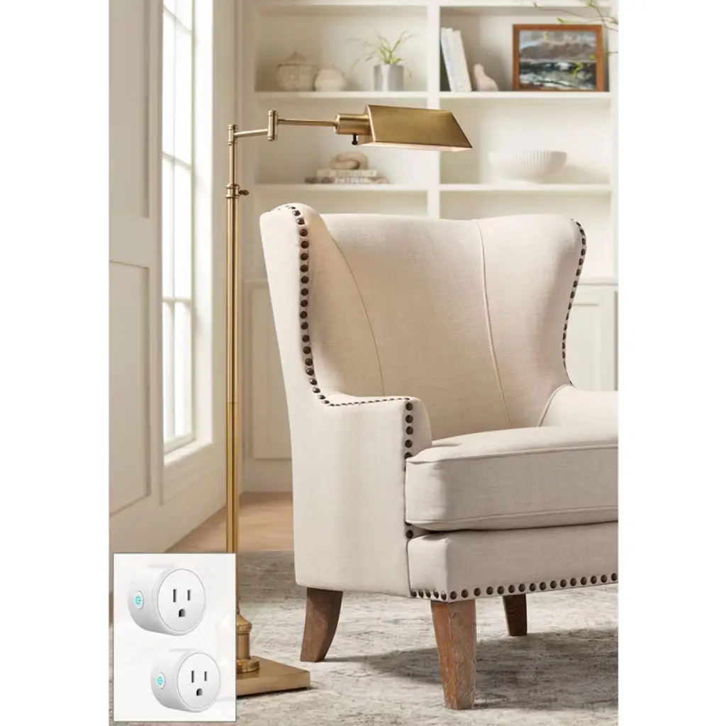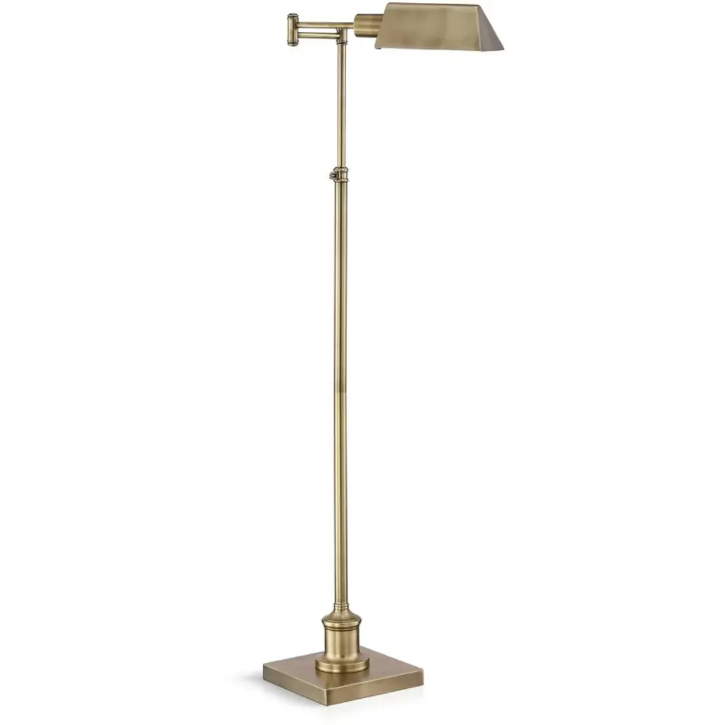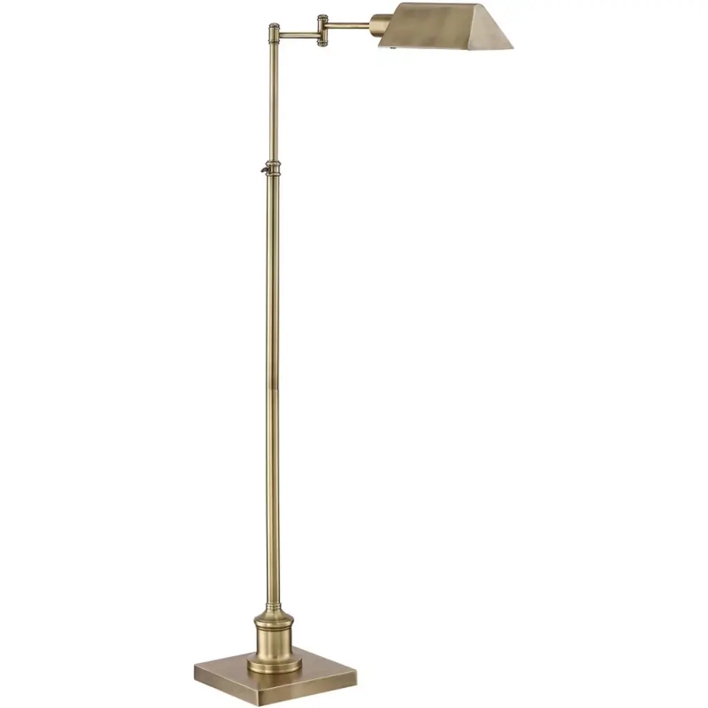 Extend illumination over a seating area or reading nook with this traditional adjustable pharmacy floor lamp. From Regency Hill, it includes a smart socket for easy voice control and features a classic look perfect for traditional dens and living rooms. An aged brass finish adds subtle warmth to complement a swing arm design and adjustable shade that ensure optimal illumination in any setting. Smart socket requires the Smart Life App, available for free in your app store. Compatible with Amazon Alexa and Google Home.