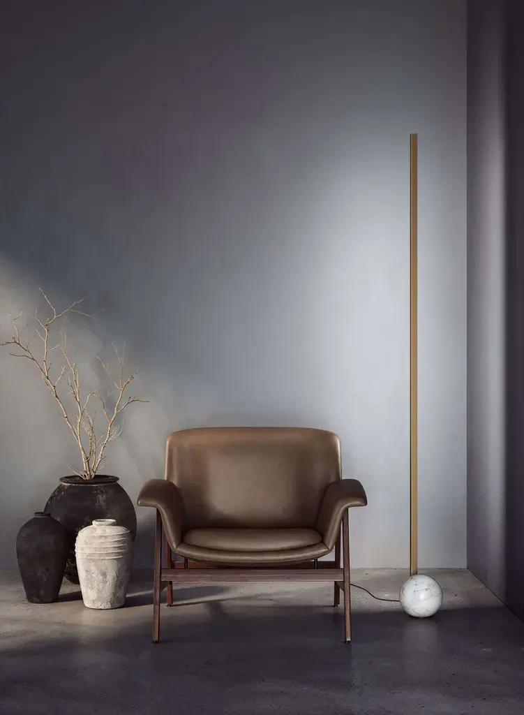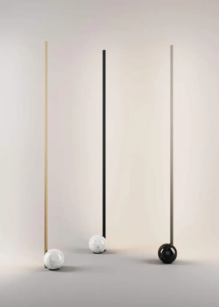 Regolo is a floor lamp featuring a metal profile available in matte black, matte champagne, or warm grey, combined with an opal methacrylate diffuser. A decorative element in Calacatta Oro or Marquinia black marble adds a refined touch.Electrical Specifications:32W – 3900 lm – 3000K – CRI>90