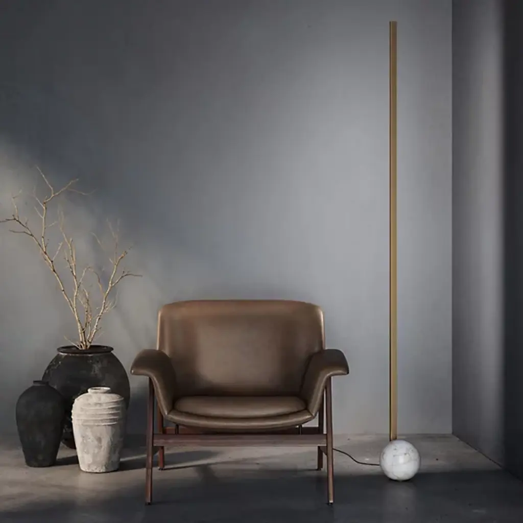 The Regolo LED Floor Lamp from Italamp transforms interiors with a stark, stylish design that keeps sculptural elements simple while emphasizing luxurious materials. A slim design by Stefano Traverso features a metal base and slender arm support, housing an efficient LED lamp within a globe shade of opal methacrylate. The pale background features contrasting veins across its surface, adding a naturalistic air that casts subtle shadows amid the gentle glow, burnishing the metalwork around it.