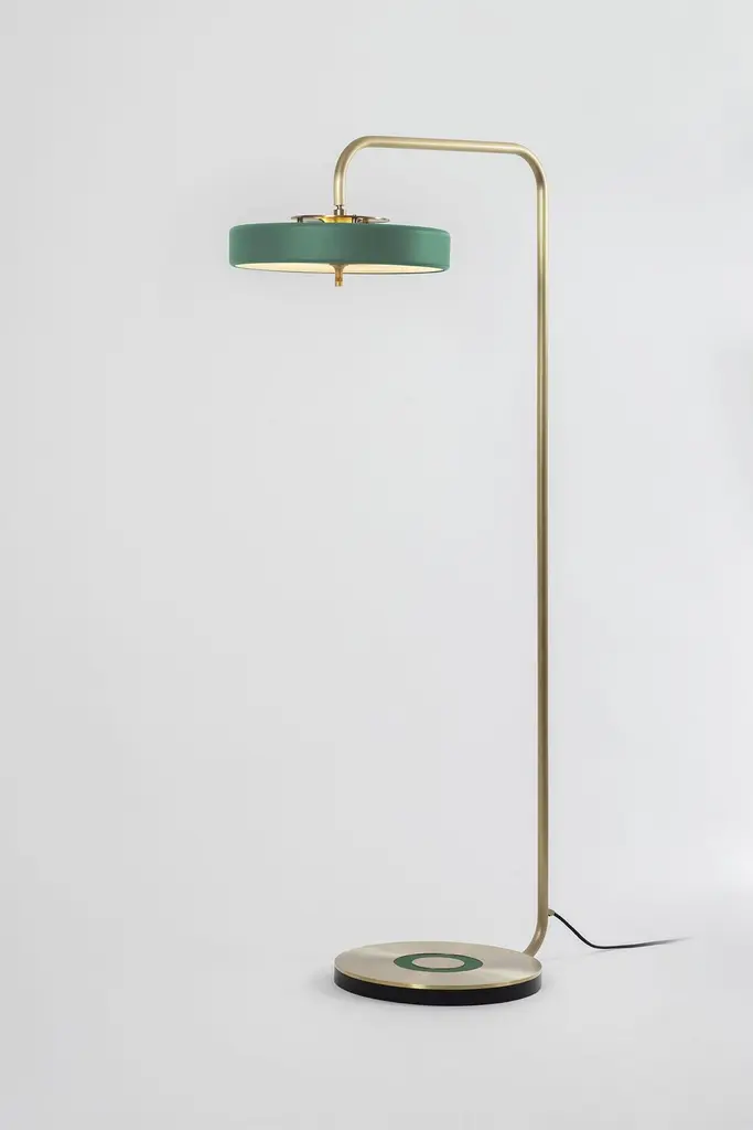 Revolve floor lamp - polished brass - green by Bert FrankDimensions: 130 x 35.4 x 9.3 cmMaterials: Brass, SteelAlso available in polished brassWhen Adam Yeats and Robbie Llewellyn founded Bert Frank in 2013 it was a meeting of minds and the start of a collaborative creative partnership with engineering at the core.Both men share a love of design and deep respect for the heritage of British engineering. Both wanted to create high-end products that would Stand the test of time and fly in the face of throwaway consumerism. The partnership has resulted in award-winning lighting and accessories that fuse the integrity of the small-scale workshop with timeless aesthetics reimagined for today.The two men work closely together from concept to end product. Robbie’s imagination and occasional flights of fancy are informed by Adam’s understanding of engineering principles and fabrication techniques. Equally, Adam's designs are often the starting point for a collection. In that sense Bert Frank is a true creative collaboration. As a result, every designed is honed to perfection, every detail carefully considered.