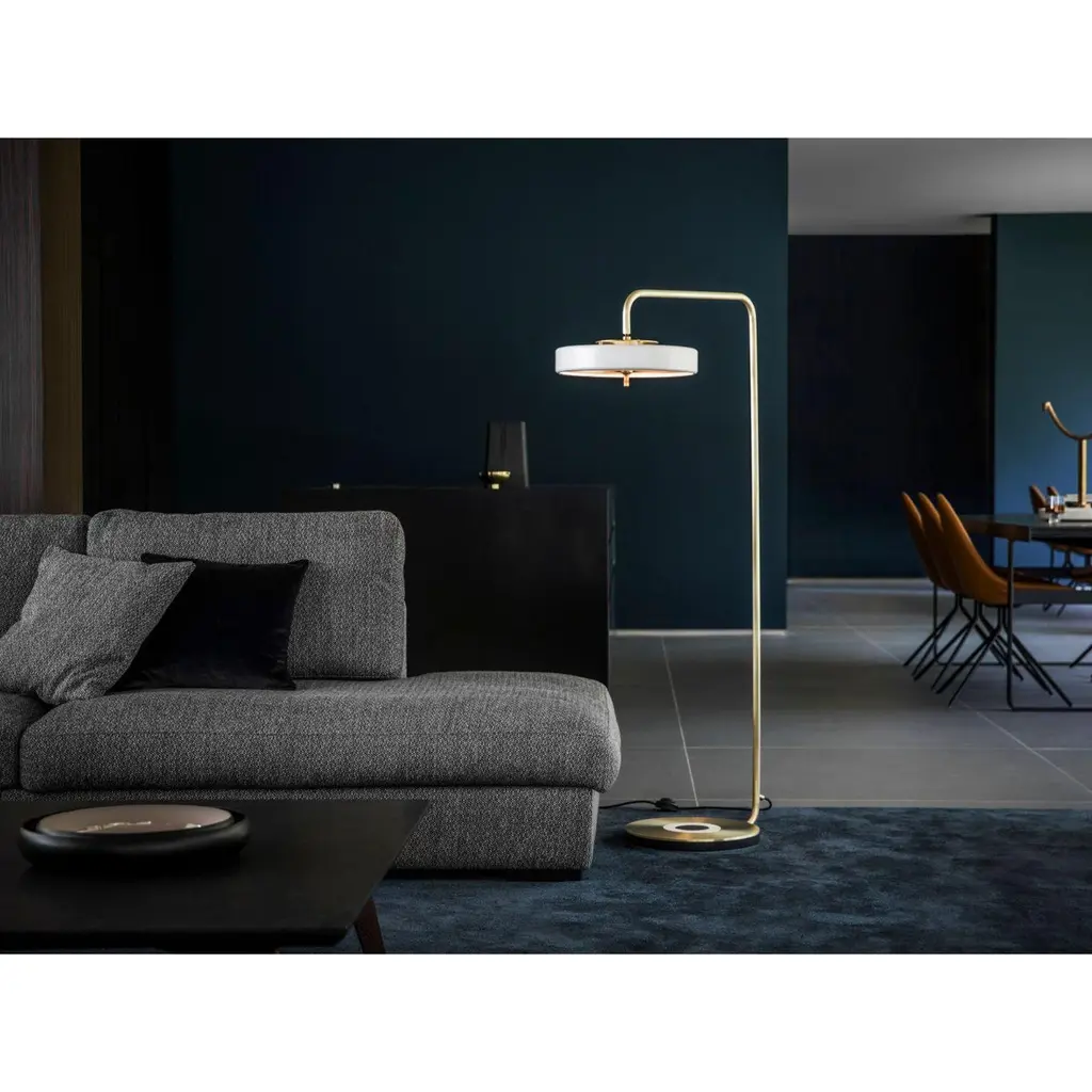 Revolve Floor Lamp, Polished Brass, White By Bert Frank