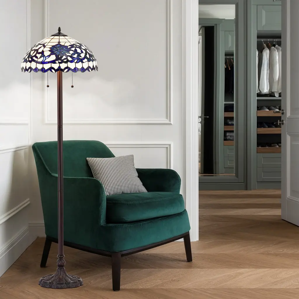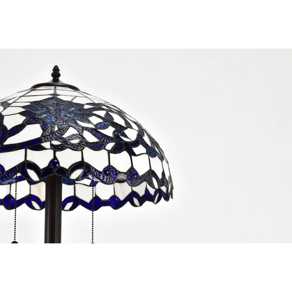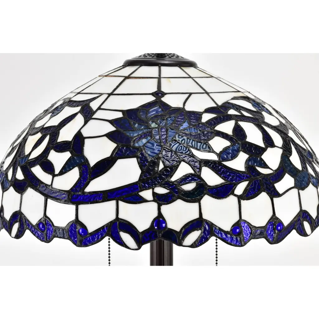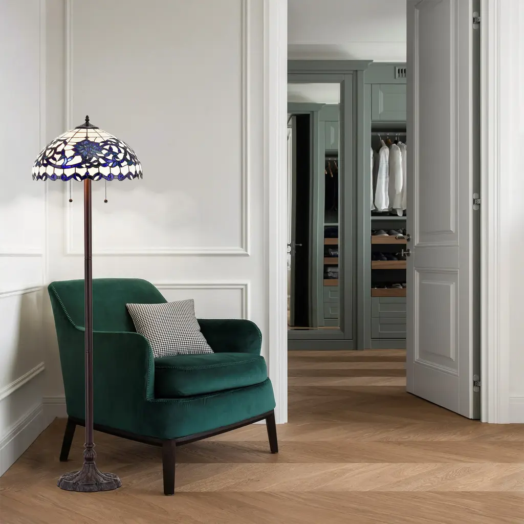 Rexi 18-Inch Blue/white Flower Design Glass/bronze Tiffany-Style Floor Lamp - Blue/white/bronze
