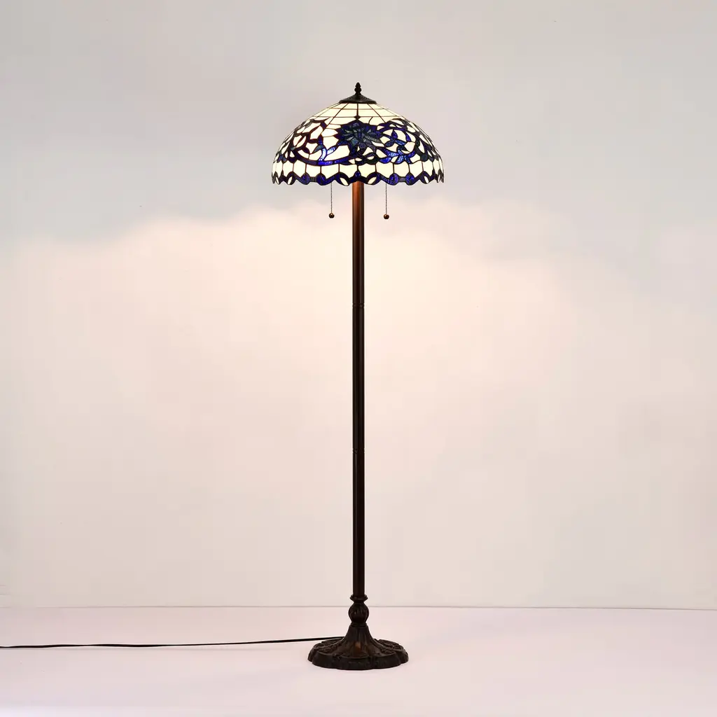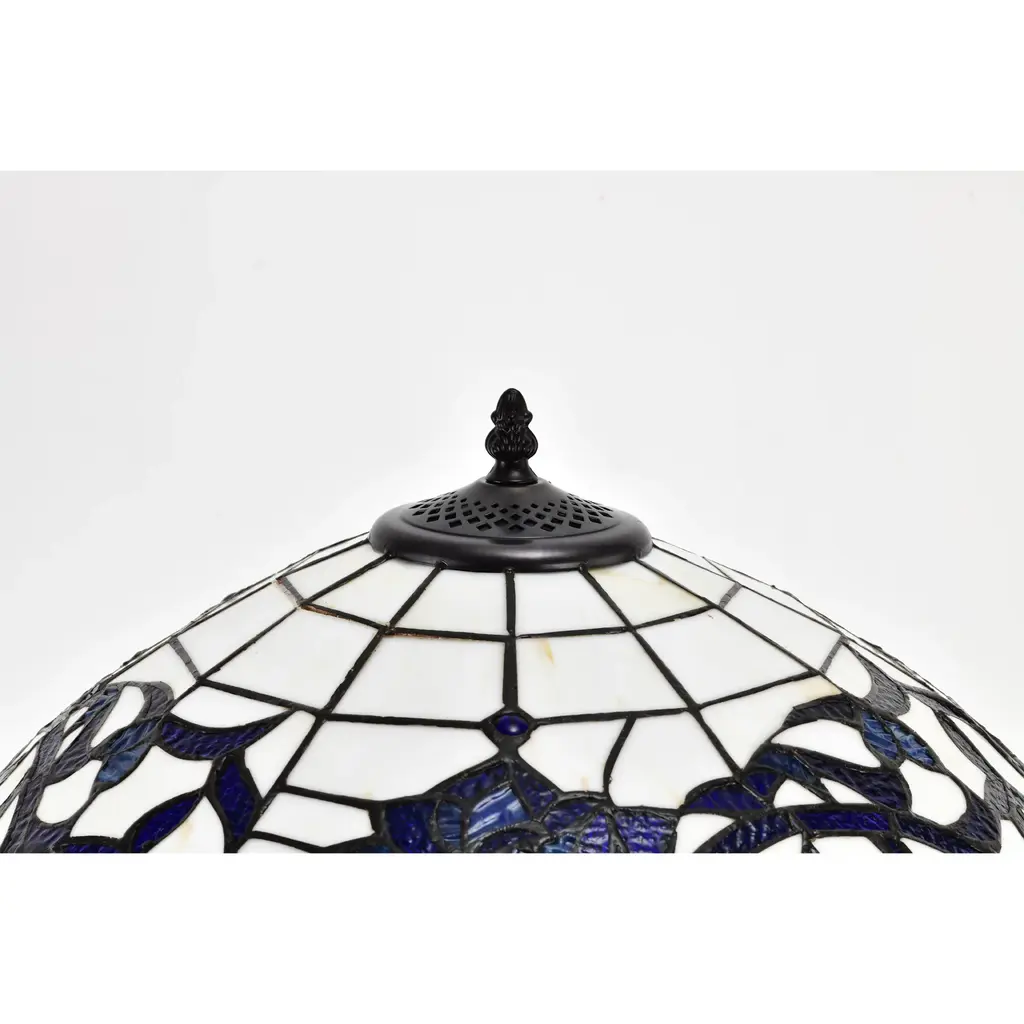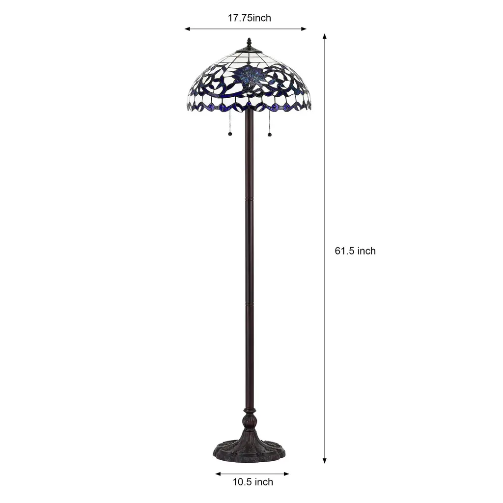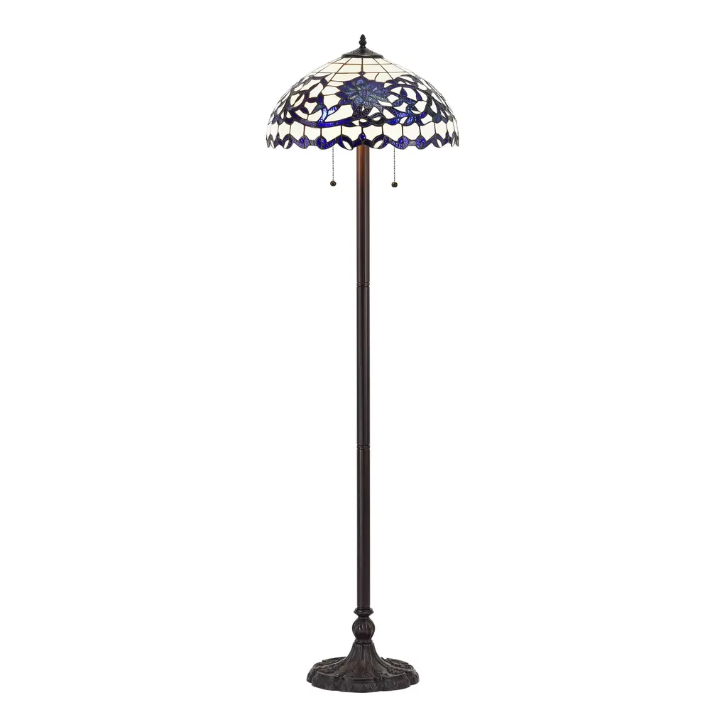 Rexi 18-Inch Blue/white Flower Design Glass/bronze Tiffany-Style Floor Lamp - Blue/white/bronze