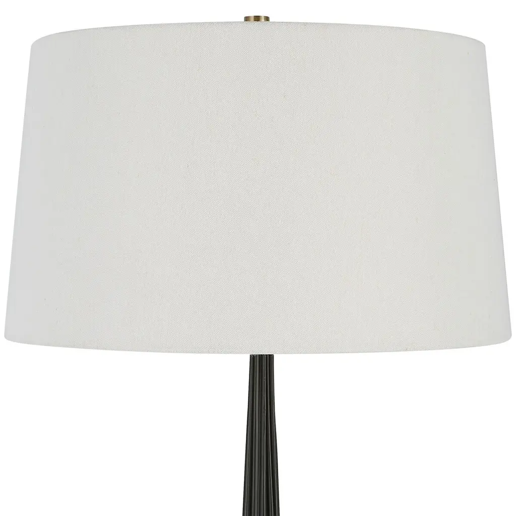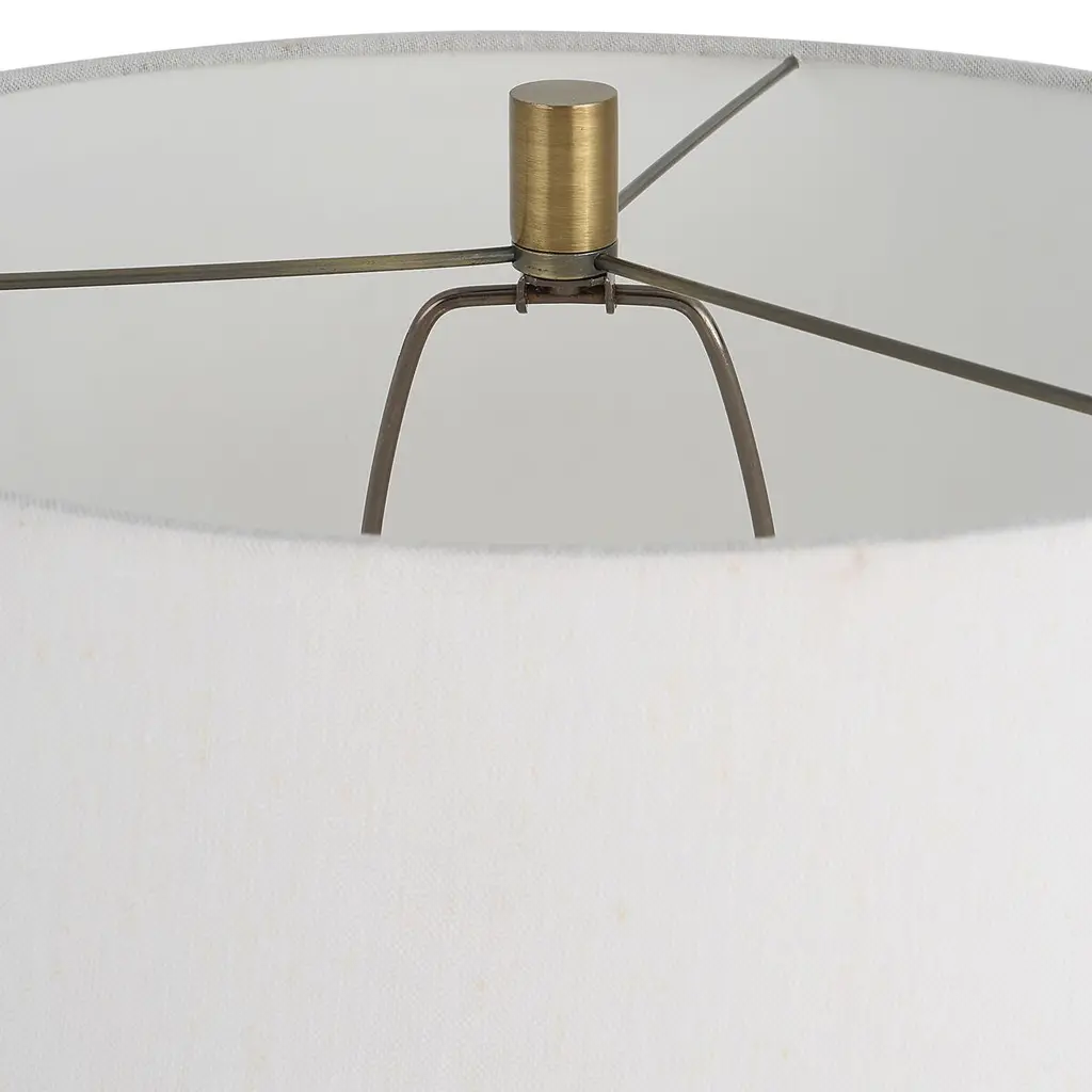 The Rhiannon Floor Lamp exudes an air of sophistication and elegance, making it a perfect addition to any refined space. Its design features a channeled cast iron base that provides a sturdy foundation, complemented by brushed brass accents that add a touch of luxury. The substantial white marble foot not only enhances its stability but also adds a classic element to its overall aesthetic. Topping off this exquisite piece is a tapered hardback shade, elegantly wrapped in white cotton fabric, which diffuses light beautifully to create a warm and inviting ambiance. The Rhiannon Floor Lamp is a testament to timeless design and meticulous craftsmanship, destined to be a standout piece in any home.
