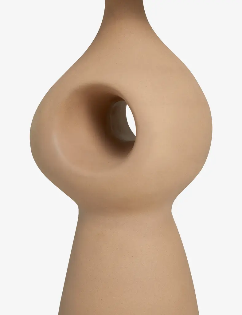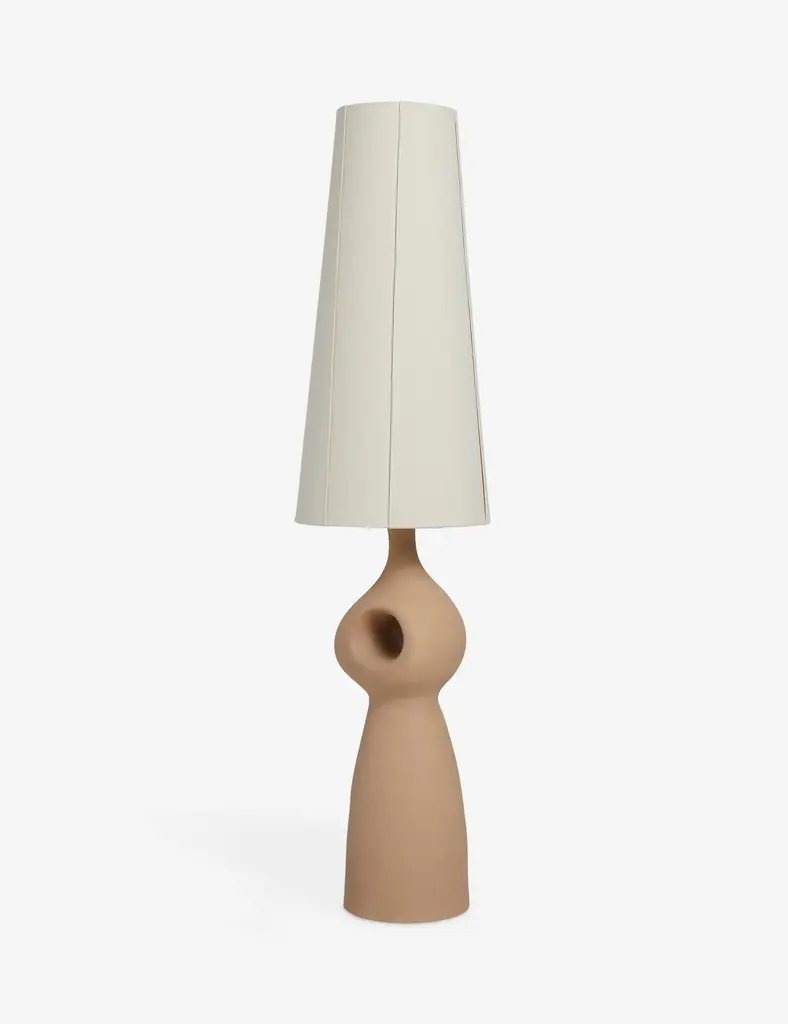 The Rhodes floor lamp stands with a sculptural poise. Its organic form features a cutout detail that offers a brilliant play of shape under the warm light. This lamp is the perfect way to bring functional art to a well-grounded space.