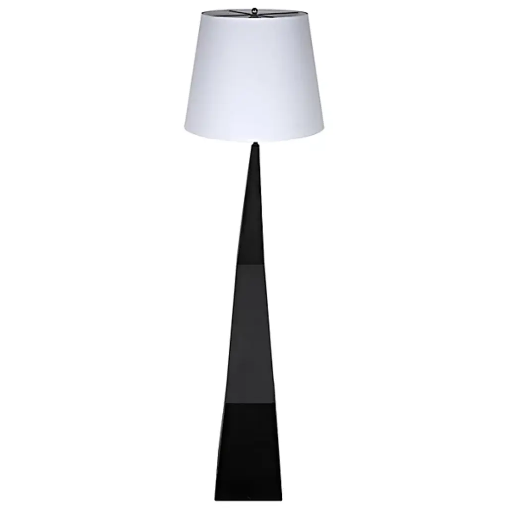The Rhombus Floor Lamp showcases stacked geometric forms that converge to craft a striking angular masterpiece. The base, sculpted from matte black steel, rises to meet a white silk tapered drum shade, creating an unexpected yet compelling lighting choice. Stark lines and a monochromatic palette bring forth a sense of movement and commanding presence, making the Rhombus Floor Lamp a captivating addition to your space that defies convention with its modern elegance.