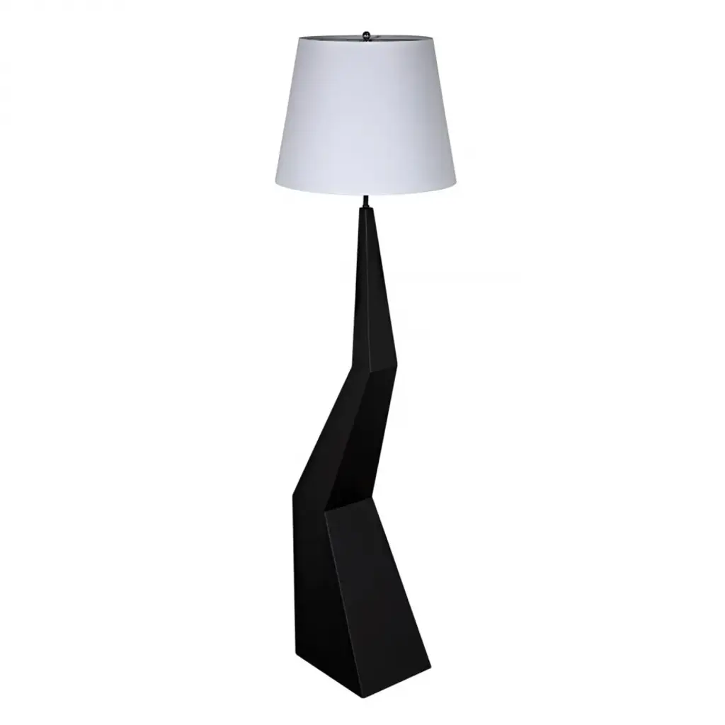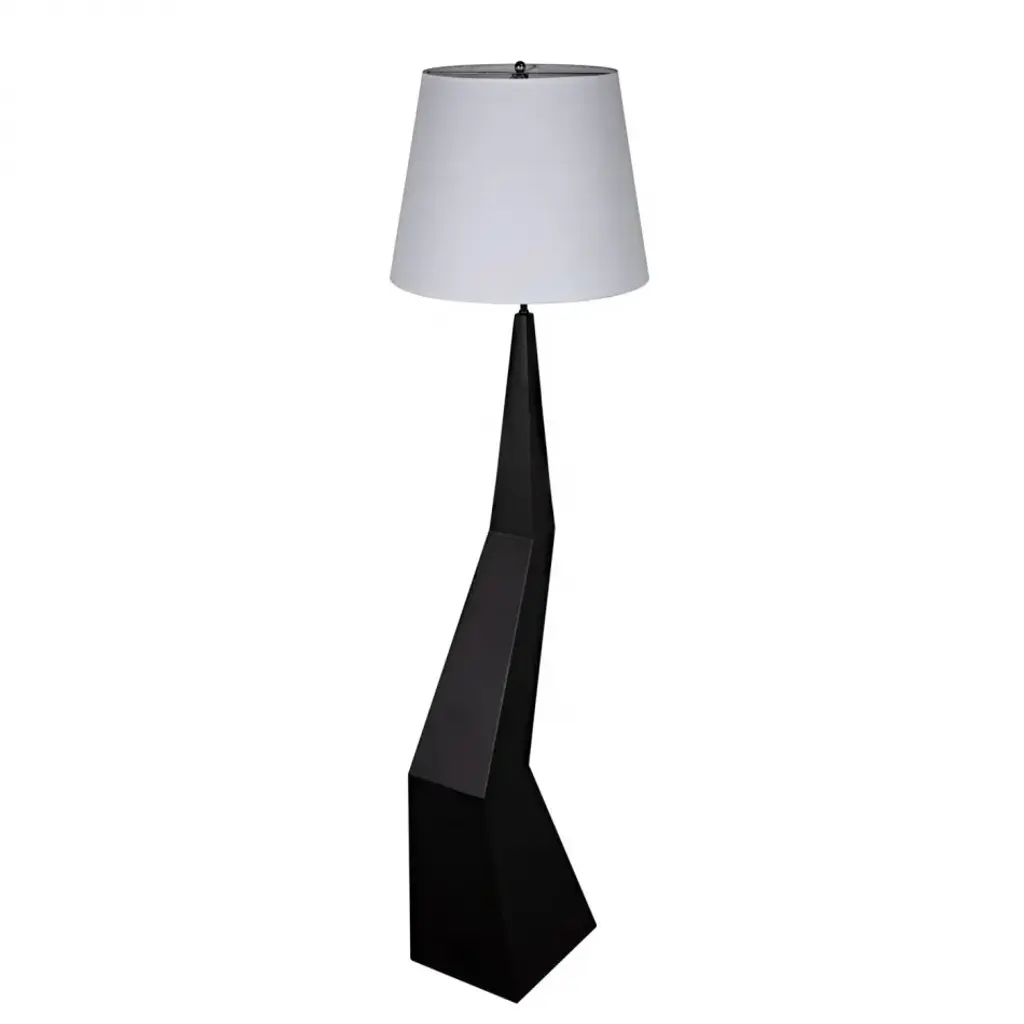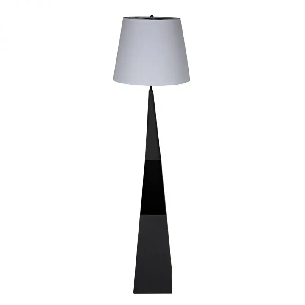 Dimensions (in): 18W x 18D x 68H The Rhombus features stacked geometric forms in matte black steel for an unexpected floor lamp with movement and presence.