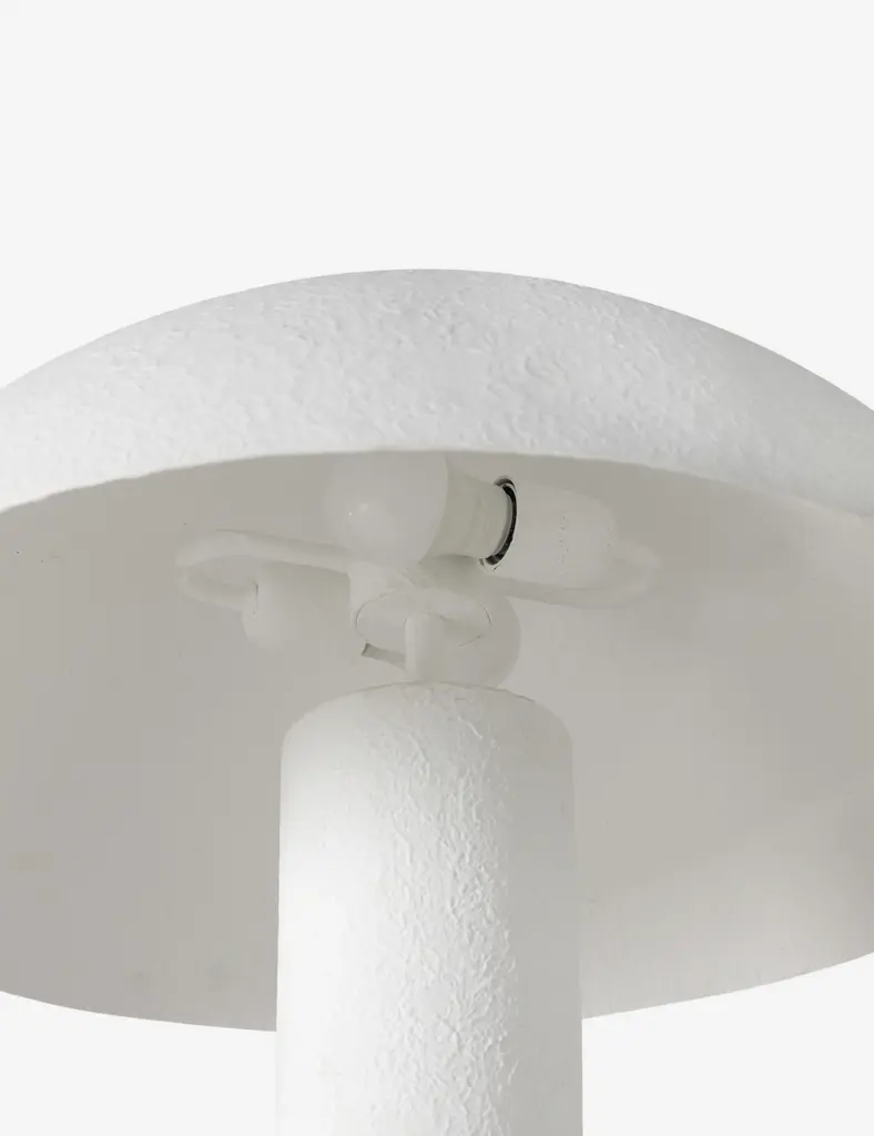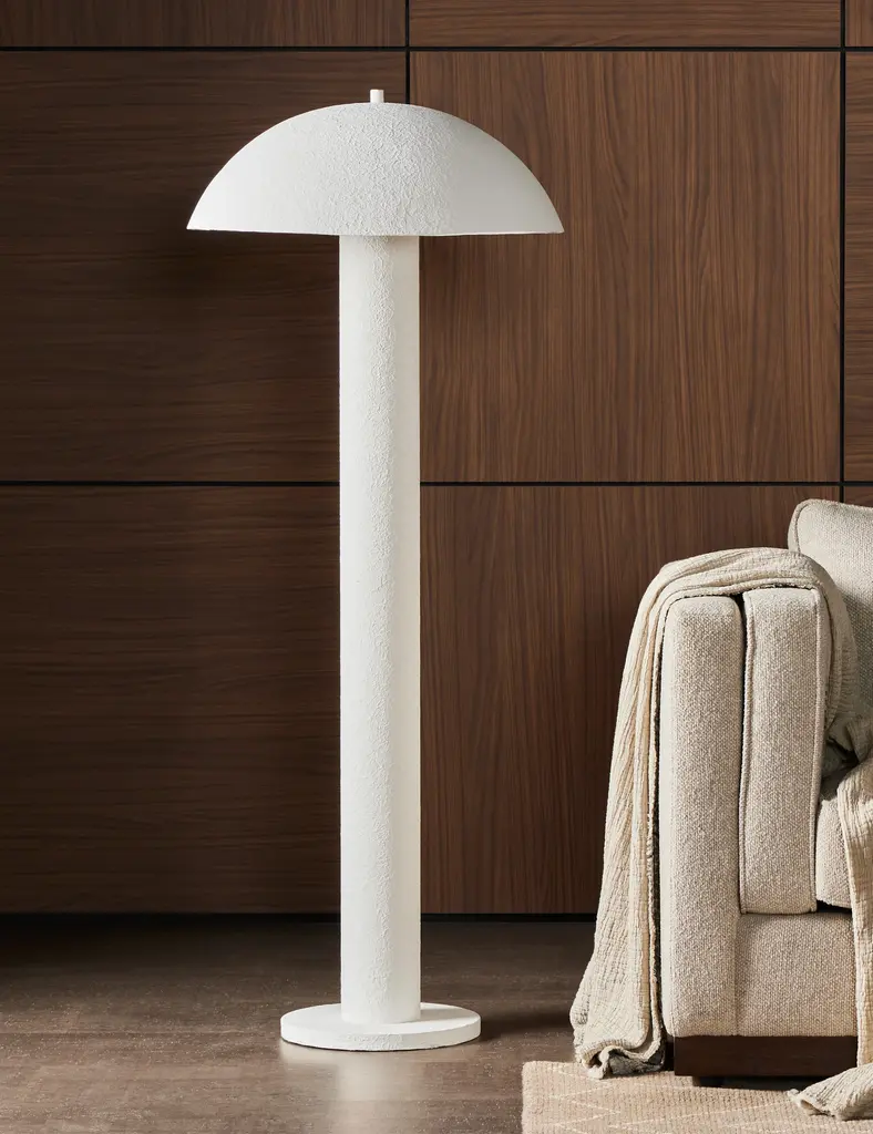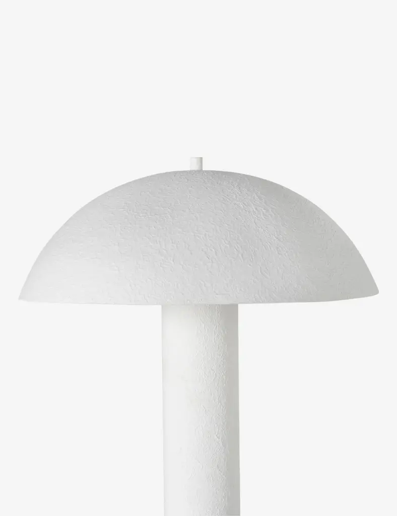 The Ricardo collection brings modern appeal to a timeless plaster-molded look. The Sansone lamp cuts a sculptural silhouette with a dome shade that washes warm light down over its columnar body. Scaled for an end table or console, this design offers a unique table lamp full of transitional appeal.