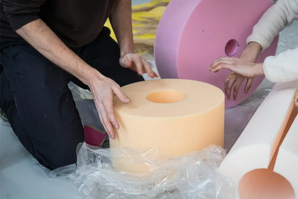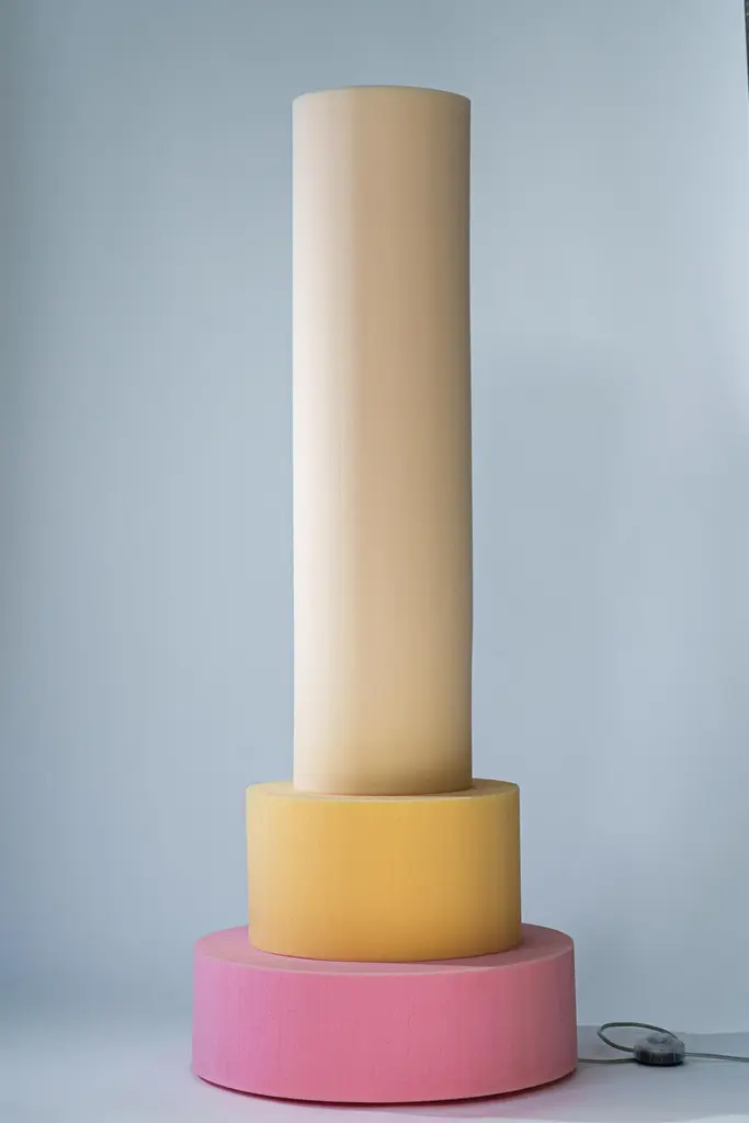 Ricardo Schuimlampen Floor Lamp by Sven JansseDimensions: D 50 x H 125 cmMaterials: Treated Polyether FoamAvailable in different colour schemes.The practice of Sven Jansse (Rotterdam, 1987) operates along the edges of art, architecture, design and photography.By investigating themes such as textures, colour, scale and architectural typologies through abstraction or precise recreation, the projects aim to function as a mediator between our every day reality and a more dreamy, parallel universe.