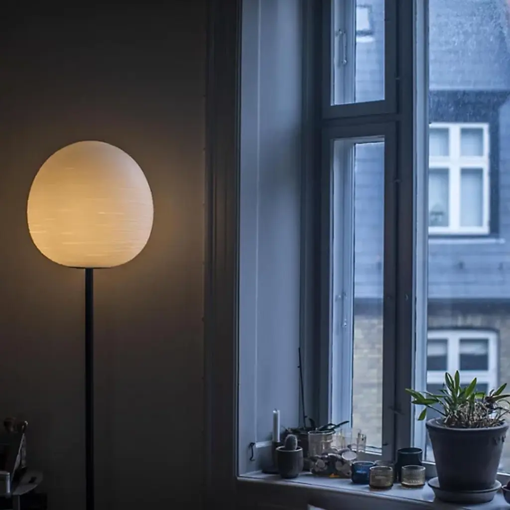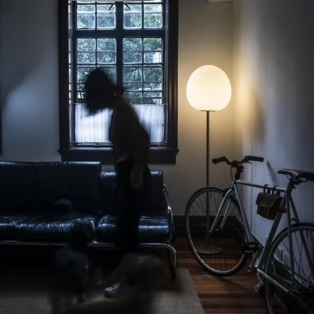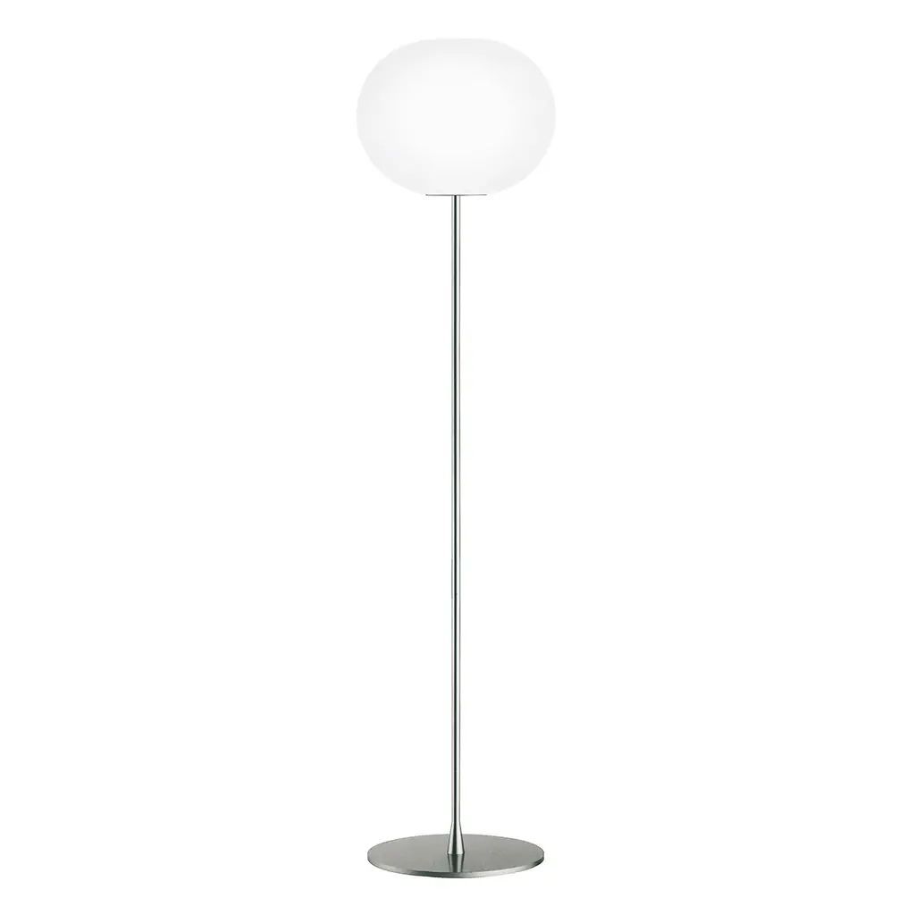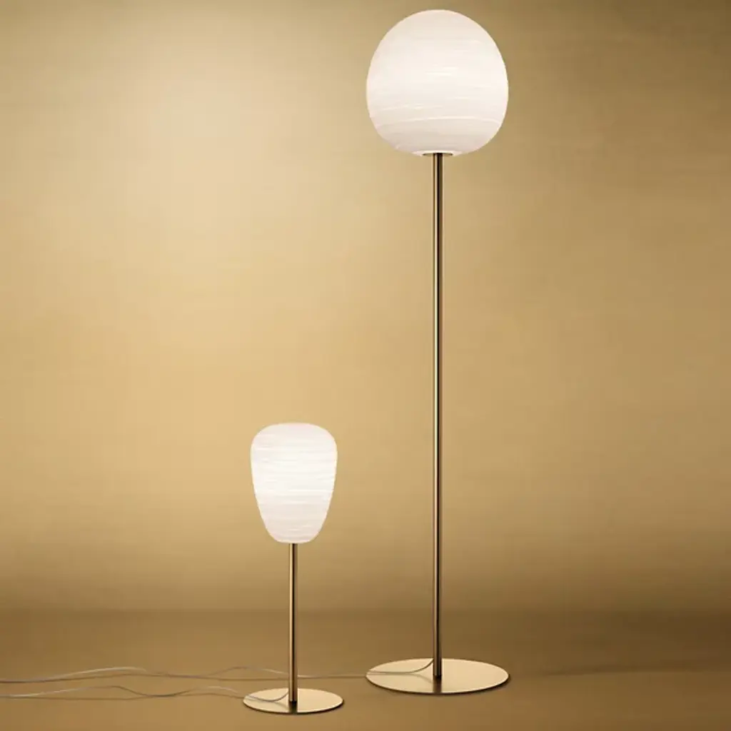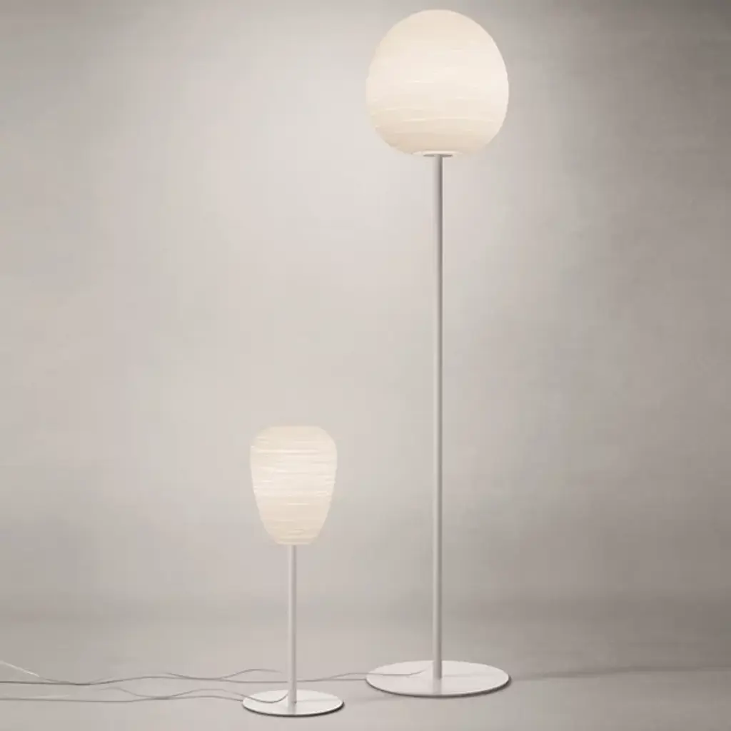 Add the graceful language of poetry to your home with the Rituals XL Floor Lamp from Foscarini. A beautiful example of modern design prowess, this welcoming piece was designed by Ludovica and Roberto Palomba. A satin blown glass shade rests atop a thin body and base made of varnished metal. Etched lines run the length of the shade, adding a dynamic edge and visual intrigue as the single bulb sends out a warm and inviting layer of light.