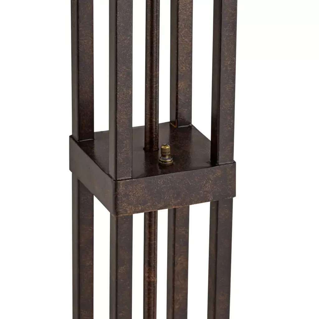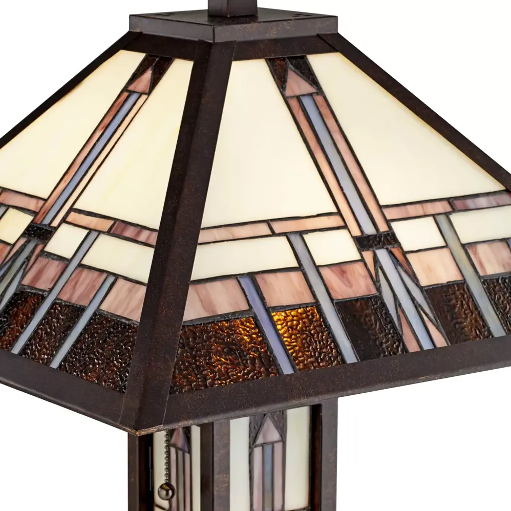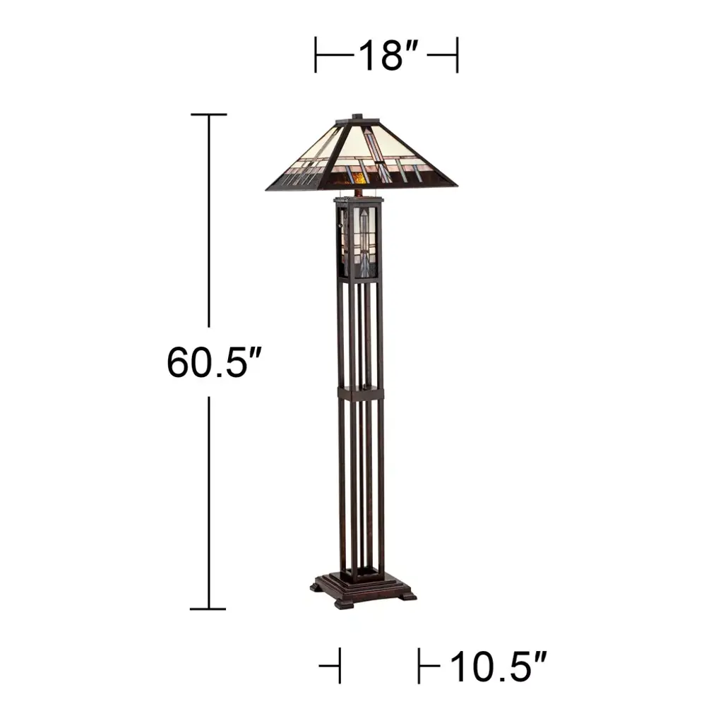 Robert Louis Tiffany Mission Rustic Floor Lamp 60 1/2" Tall Oiled Bronze With Nightlight Geometric Stained Art Glass Shade For Living Room Bedroom