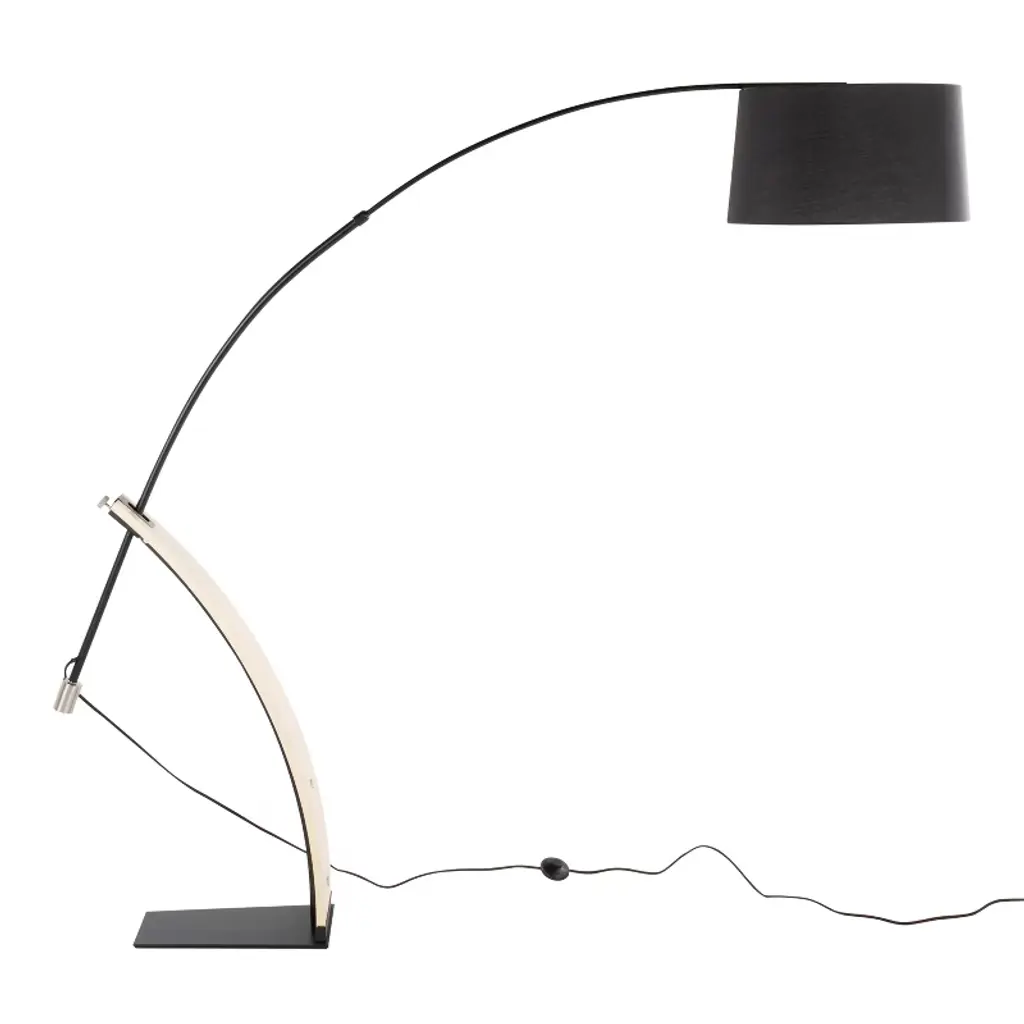 With a unique design all of its own, the LumiSource Robyn Floor Lamp is the perfect piece to set off any living area. Ultra sleek with an arched metal neck complimented by a stylish bent wood accent, metal base, and a stylish black linen shade, the Robyn Floor Lamp provides mid-century modern appeal.Mid-century modern stylingArched floor lampLinen shade