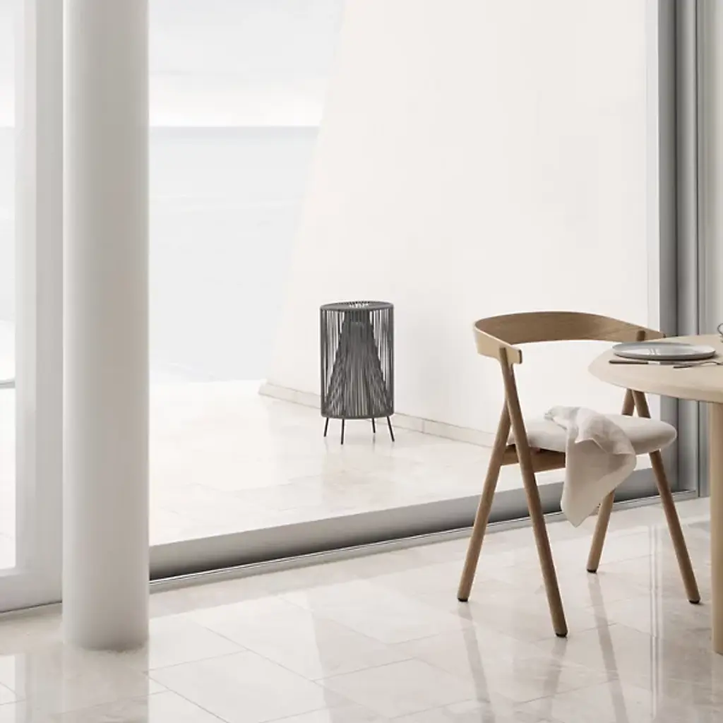 The Rope Indoor/Outdoor Mobile Rechargeable LED Floor Lamp by Blomus is a combination of artistic craftsmanship and modern technology. A cordless LED lamp is hidden behind a corpus of coiled ropes. The synthetic rope is used in an unconventional way, and when lit, the beautiful shadows cast on space surroundings are pure magic. Your lamp is designed to be used indoors or outdoors and is made of powder-coated steel and synthetic rope.