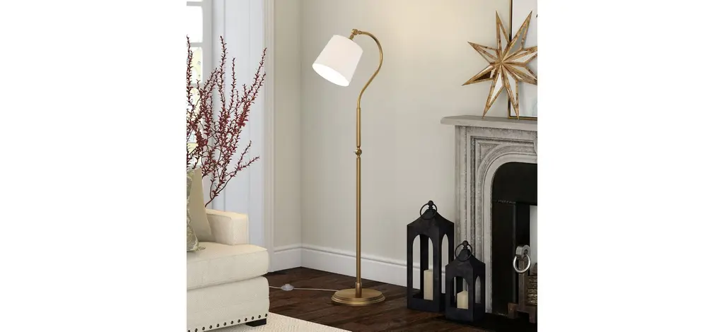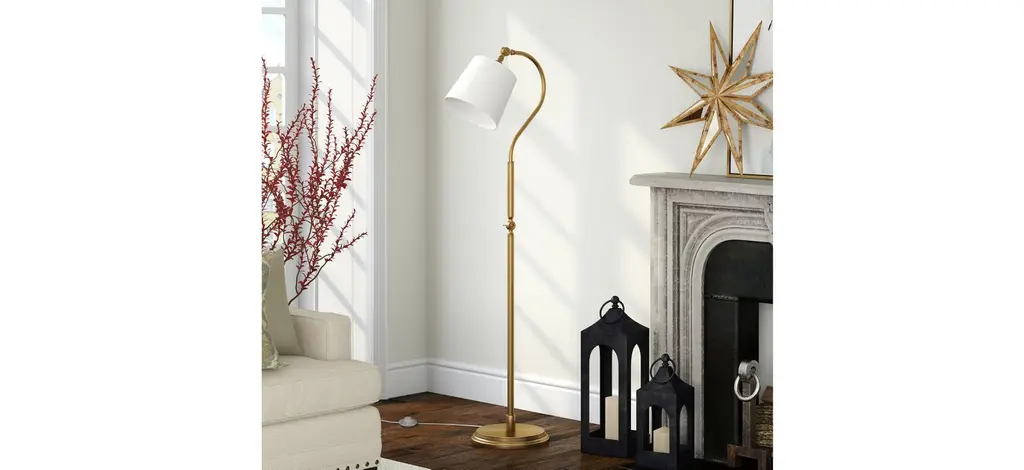 This modern floor lamp counterbalances function and design. It features an arced design which allows for perfect targeted lighting. Inspired by industrial and farmhouse design, it features steel construction and a linen shade.