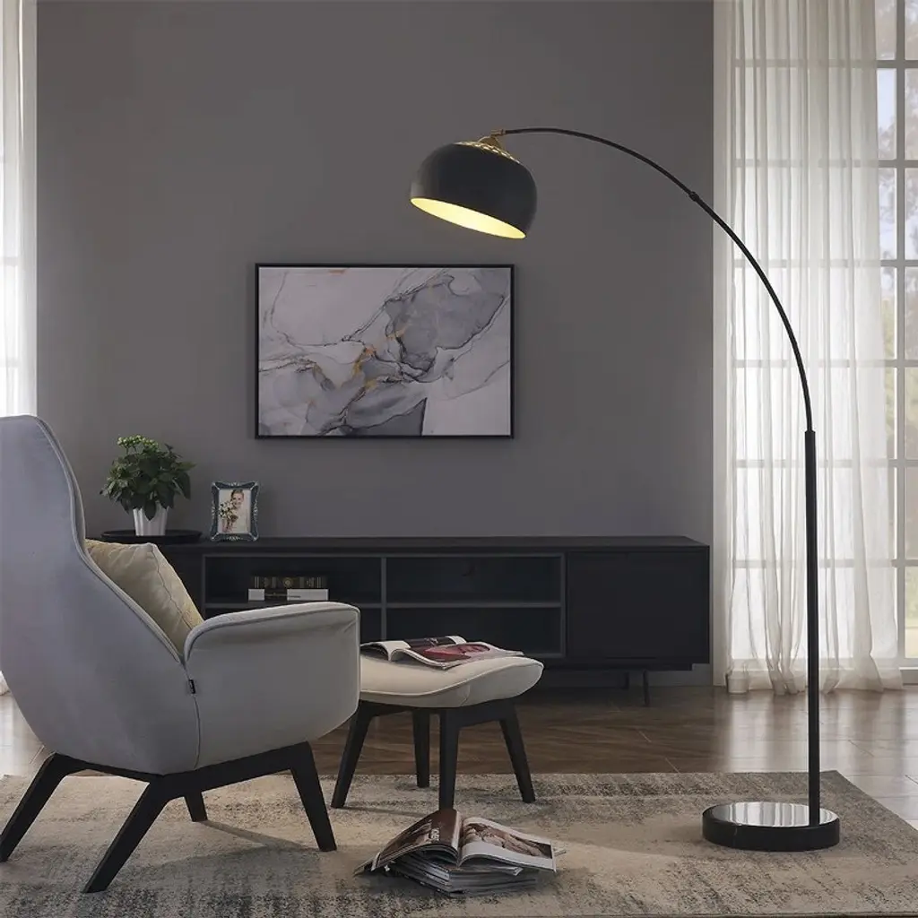 This sleek arched floor lamp adds modern flair and cozy illumination to living rooms or offices. A sturdy marble base keeps it securely in place, while the adjustable dome shade lets you direct light precisely where needed—ideal for reading. The foot-switch design ensures effortless control. With its graceful silhouette and refined materials, it’s both a stylish and practical lighting upgrade.