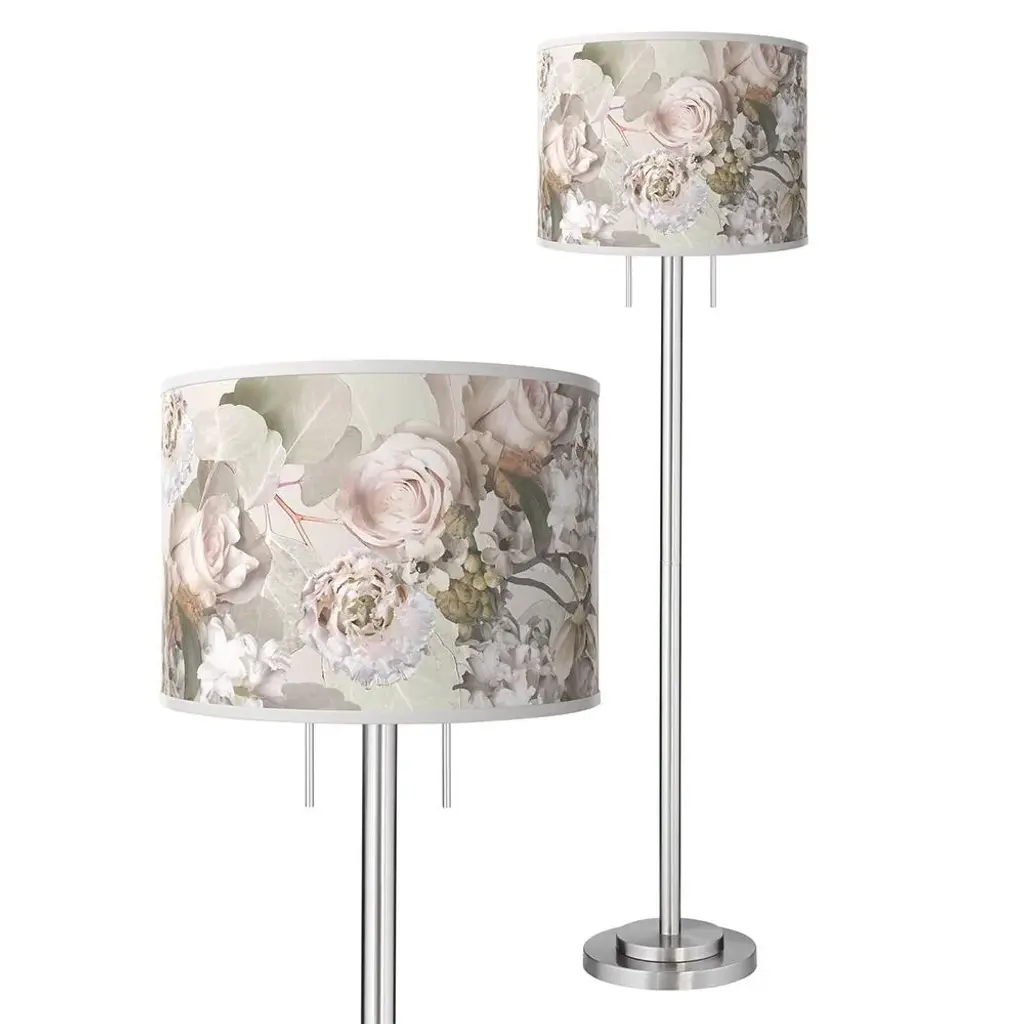 Rosy Blossoms Brushed Nickel Garth Floor Lamp - 18" X 62" - Grey - 18" X 62"