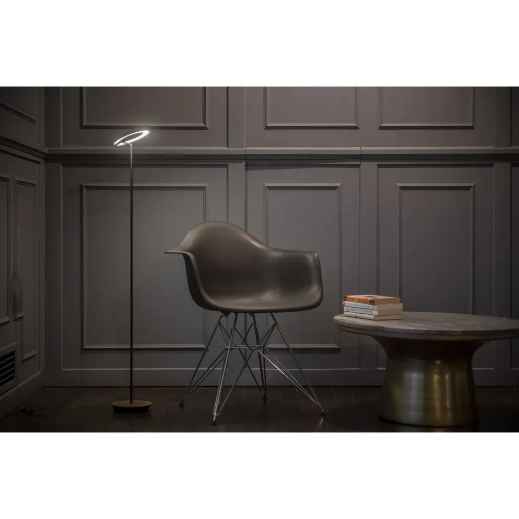 The Royyo Floor lamp adds an elegant flair to any space with its minimal wiring and pleasing circular design. Its minimal silhouette houses complex inner technology for a marriage of form and functionality. Royyo's embedded USB port allows users to charge