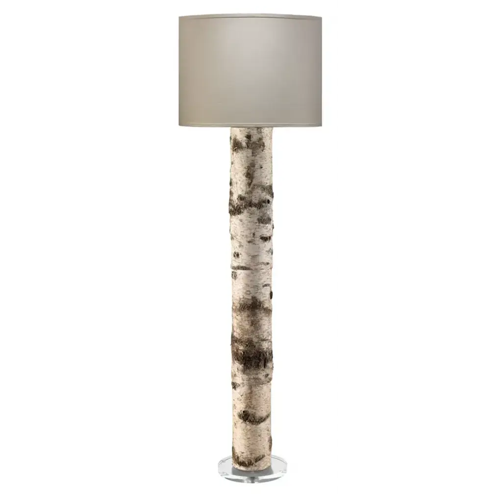 The Amish Rustic Hickory Lamp features hickory posts with the bark intact, providing a rustic look.