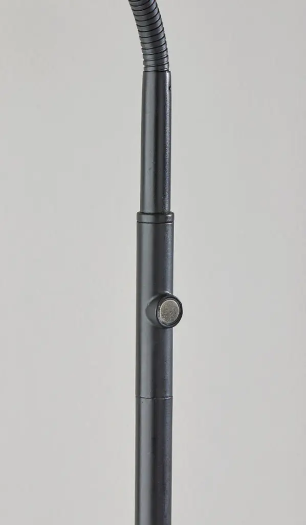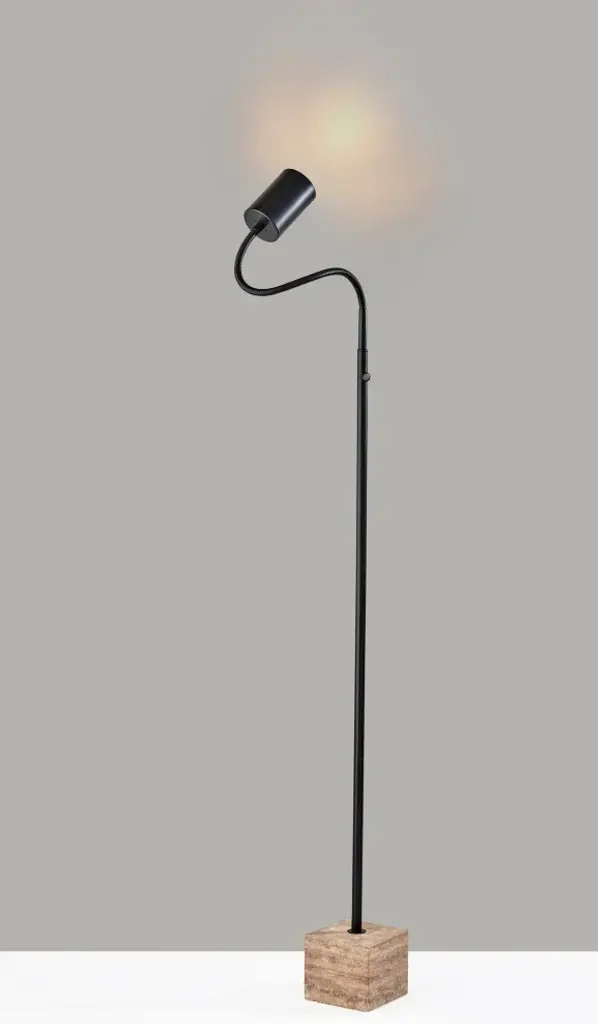Introducing the 3966-01 Rutherford LED Floor Lamp, where modern aesthetics meet functional flexibility. This floor lamp boasts a sleek black finish that adds a contemporary flair to your living space. The adjustable gooseneck arm allows you to effortlessly direct the light, making it the perfect companion for reading, working, or setting the ideal ambiance. Anchoring this lamp is a substantial cube base, meticulously crafted from luxurious travertine stone, adding a touch of natural elegance while ensuring stability. Crowned with a black metal cylinder-shaped shade, the Rutherford Floor Lamp radiates sophistication. Included with the lamp is a 5W GU10 LED dimmable bulb, offering both energy efficiency and a customized lighting experience. Notably, the lamp features a convenient 3-level touch dimmer switch located on the tube, giving you easy control over brightness. Illuminate your living space with the Rutherford LED Floor Lamp, seamlessly blending style and functionalityContemporary Elegance: The 3966-01 Rutherford LED Floor Lamp features a sleek black finish that adds a touch of modernity to your living area.Adjustable Gooseneck Arm: With its flexible gooseneck arm, this lamp allows you to effortlessly direct the light, making it ideal for reading, working, or setting the mood.Natural Luxury: The lamp''s chunky cube base is crafted from luxurious travertine stone, infusing your space with the timeless appeal of natural elements while ensuring stability.Energy-Efficient LED: Included with the lamp is a 5W GU10 LED dimmable bulb that combines energy efficiency with a warm, inviting glow, suitable for various lighting needs.Touch Dimmer Control: Equipped with a convenient 3-level touch dimmer switch located on the tube, the Rutherford Floor Lamp provides effortless control over brightness, allowing you to create the perfect atmosphere for any occasion.