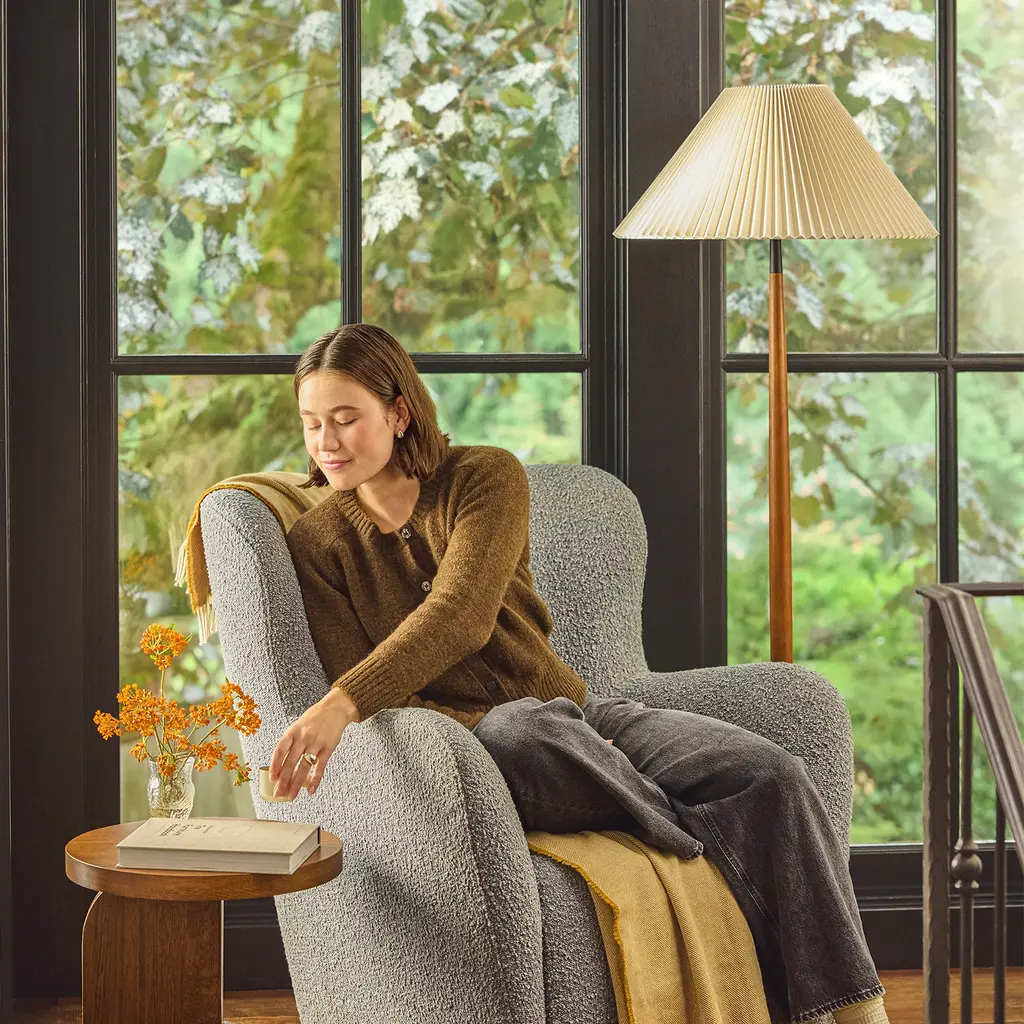 With its slim, slender frame stained in a rich walnut finish, the Rye has all the right base ingredients for a classic in the making. The soft, warm glow that exudes from its pleated linen shade makes it a perfect pairing with the timeless leather armchair of your reading nook. A drink in one hand, book in the other, all under the Rye Floor Lamp — does it get better than that?