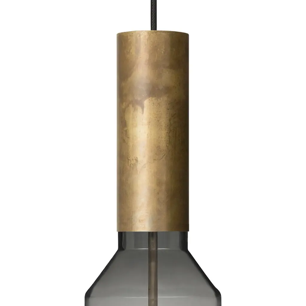Ceiling lamp model Fenomen Smal designed by Sabina Grubbeson and manufactured by Konsthantverk.The production of lamps, wall lights and floor lamps are manufactured using craftsman’s techniques with the same materials and techniques as the first models.Materials and color:Raw brass/smoked glass.Available In clear glass/raw brass. Dimensions:D. 5.51 in, H. 22.44 inD. 14 cm, H. 57 cmTechnical details:Max 40 W E27Mounting: Hook mountedConnection: Terminal in canopyThe lamps are wired with standard European wiring. Not UL listed.Indoor use and dry locations only.This lamp is wired for Europe, if used in US or any other country the client will need to convert it.Konsthantverk means “Art” and ‘Craftsmanship’, this Swedish company has been manufacturing lamps for nearly one hundred years. They do all the process: milled, drilled, formed and finished. For several years they ran through its own glassworks in Småland for the manufacture of his lamps glass.They have an entire collection for consumers, but they also produce special products as street lighting on Biblioteksgatan in Stockholm or the ceiling lighting at the Kennedy Center in Washington.The Konsthantverk lamps are honest about their dedication to materials and their process, a lamp made by them is a true handicraft. Their creations embody simplicity and careful consideration, where materials and design are united.Each lamp from Konsthantverk has in itself a part of Swedish History since 1921.