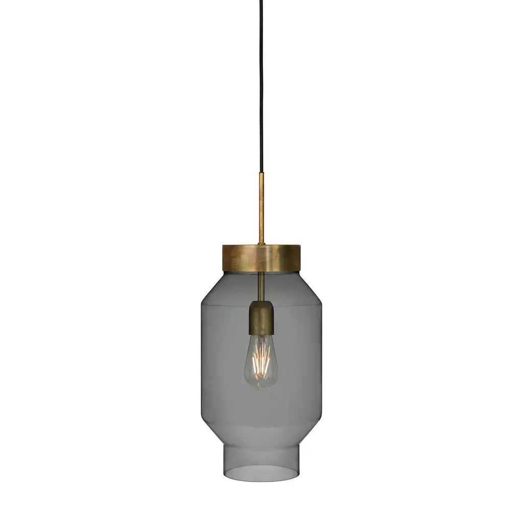 Ceiling lamp model Fenomen Stor designed by Sabina Grubbeson and manufactured by Konsthantverk.The production of lamps, wall lights and floor lamps are manufactured using craftsman’s techniques with the same materials and techniques as the first models.Materials and color:Raw brass/smoke-coloured glassAvailable in clear glass/raw brass.Dimensions:D. 8.66 in, H. 21.25 inD. 22 cm, H. 54 cmTechnical details:Max 60 W E27Mounting: Hook mountedConnection: Terminal in canopyThe lamps are wired with standard European wiring. Not UL listed.Indoor use and dry locations only.This lamp is wired for Europe, if used in US or any other country the client will need to convert it.Konsthantverk means “Art” and ‘Craftsmanship’, this Swedish company has been manufacturing lamps for nearly one hundred years. They do all the process: milled, drilled, formed and finished. For several years they ran through its own glassworks in Småland for the manufacture of his lamps glass.They have an entire collection for consumers, but they also produce special products as street lighting on Biblioteksgatan in Stockholm or the ceiling lighting at the Kennedy Center in Washington.The Konsthantverk lamps are honest about their dedication to materials and their process, a lamp made by them is a true handicraft. Their creations embody simplicity and careful consideration, where materials and design are united.Each lamp from Konsthantverk has in itself a part of Swedish History since 1921.