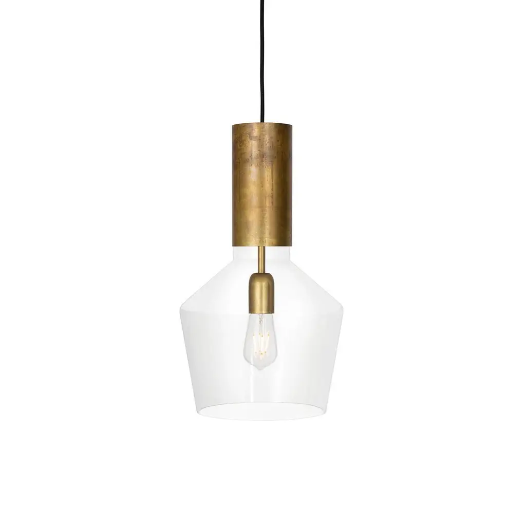 Ceiling lamp model Fenomen Widh designed by Sabina Grubbeson and manufactured by Konsthantverk.The production of lamps, wall lights and floor lamps are manufactured using craftsman’s techniques with the same materials and techniques as the first models.Materials and color:Raw brass/clear glassAvailable in smoke-colored glass/raw brass.Dimensions:D 11.81 in, H 18.89 inD 30 cm, H 48 cmTechnical details:Max 60 W E27Mounting: Hook mountedConnection: Terminal in canopyThe lamps are wired with standard European wiring. Not UL listed.Indoor use and dry locations only.This lamp is wired for Europe, if used in US or any other country the client will need to convert it.Konsthantverk means “Art” and ‘Craftsmanship’, this Swedish company has been manufacturing lamps for nearly one hundred years. They do all the process: milled, drilled, formed and finished. For several years they ran through its own glassworks in Småland for the manufacture of his lamps glass.They have an entire collection for consumers, but they also produce special products as street lighting on Biblioteksgatan in Stockholm or the ceiling lighting at the Kennedy Center in Washington.The Konsthantverk lamps are honest about their dedication to materials and their process, a lamp made by them is a true handicraft. Their creations embody simplicity and careful consideration, where materials and design are united.Each lamp from Konsthantverk has in itself a part of Swedish History, since 1921.