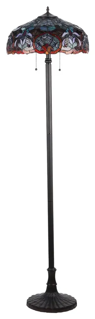 SADIE, a Victorian downward floor lamp, will make a design statement by itself. Expand the effect by adding one or more of the other lamps in this design style. Expertly handcrafted with top quality materials including real stained glass and gem-like cabochons. The resin base and metal pole are finished in an antique bronze patina.(2) 100 Watt max E26 Type A Bulb (not included)Pull chain switch525pcs glass cut, 90 beadsDownlightIndoor SettingSince these are hand crafted products, the exact color of glass pieces may vary. Colors of the glass will appear darker and less vibrant when not illuminated. Handmade glass will vary from one piece to the other; glass made at different times will also vary. Light bulbs used in lamps or ambient lighting may affect the appearance of the products. Stained glass product has been protected with mineral oil as part of the finishing process. Please use a soft dry cloth to remove any excess oil.
