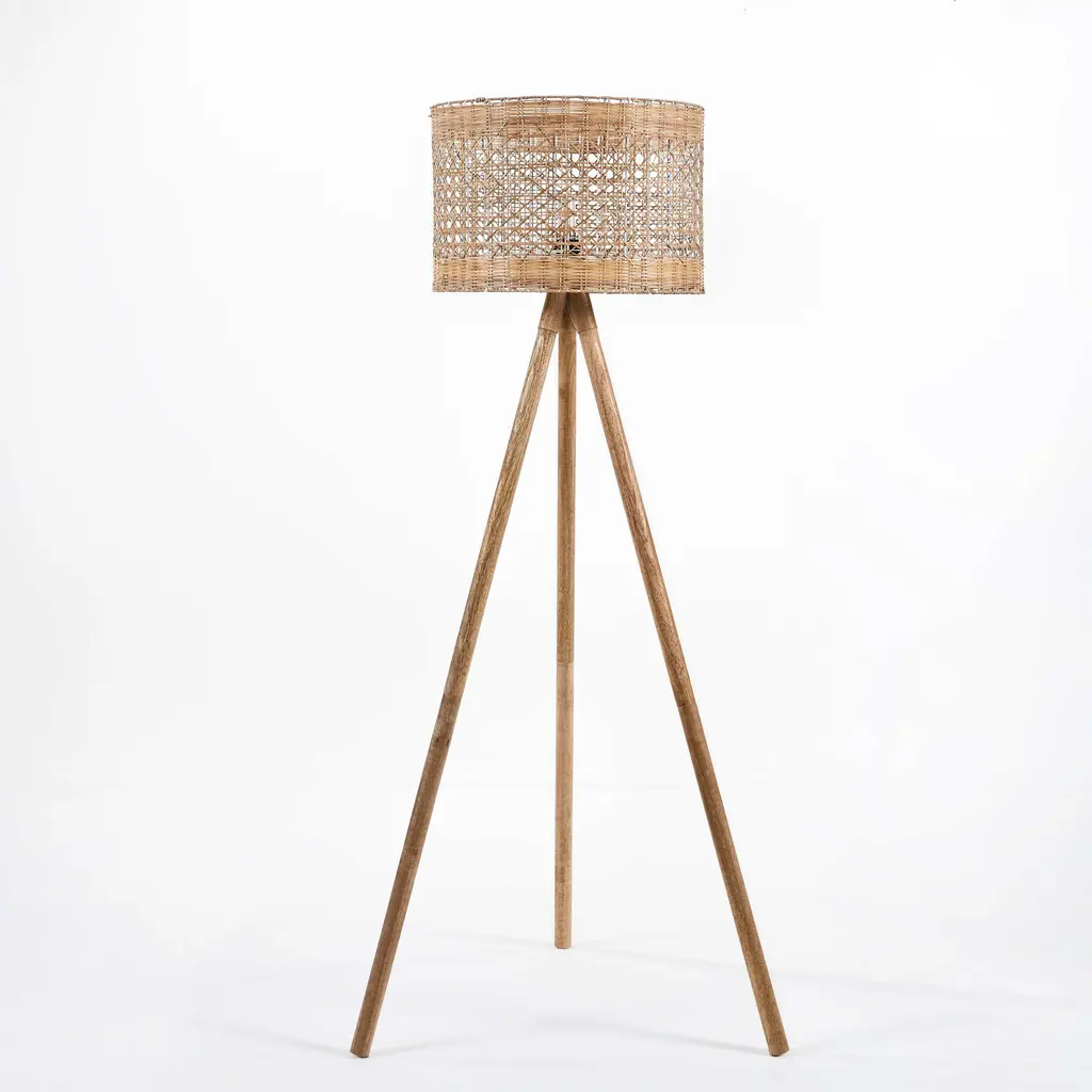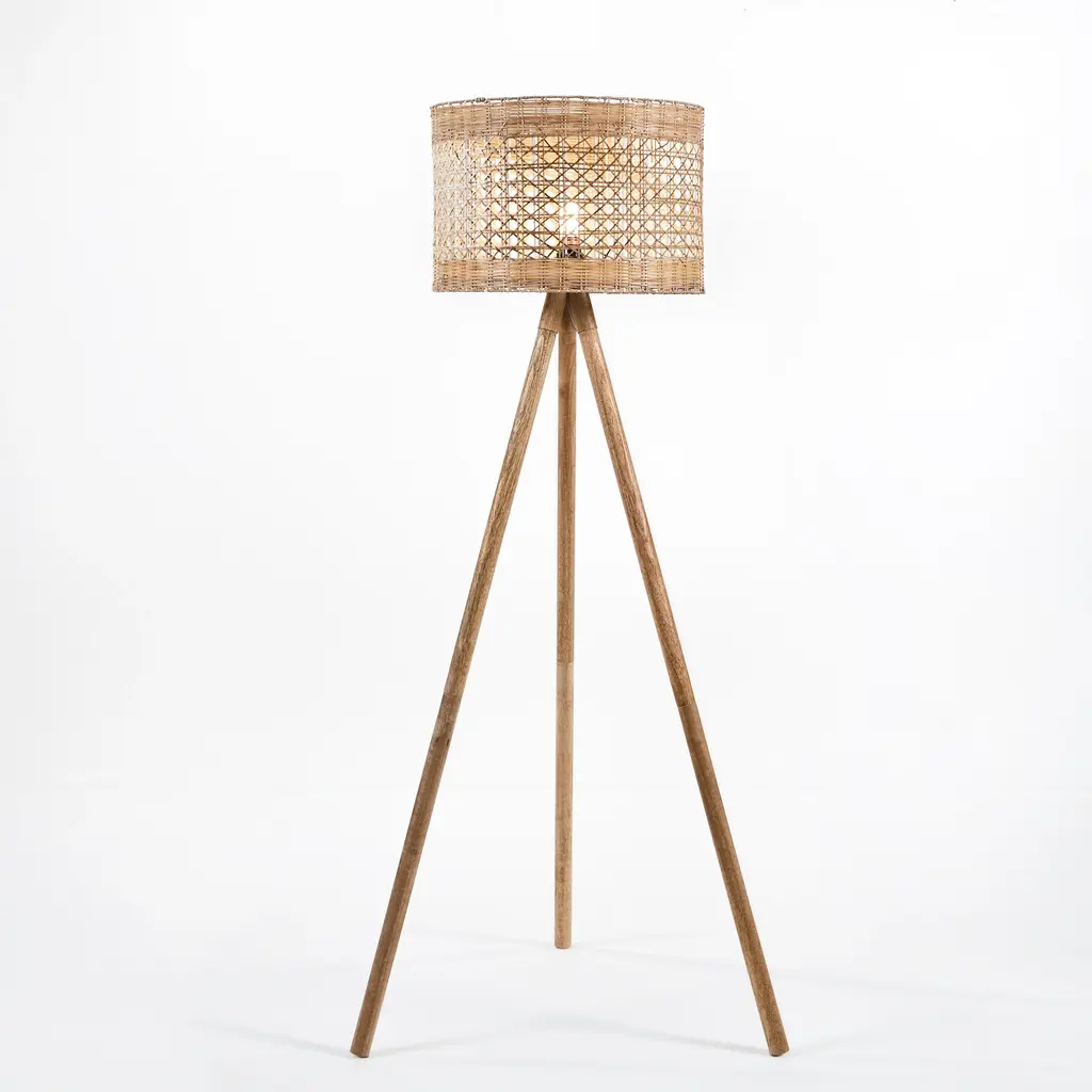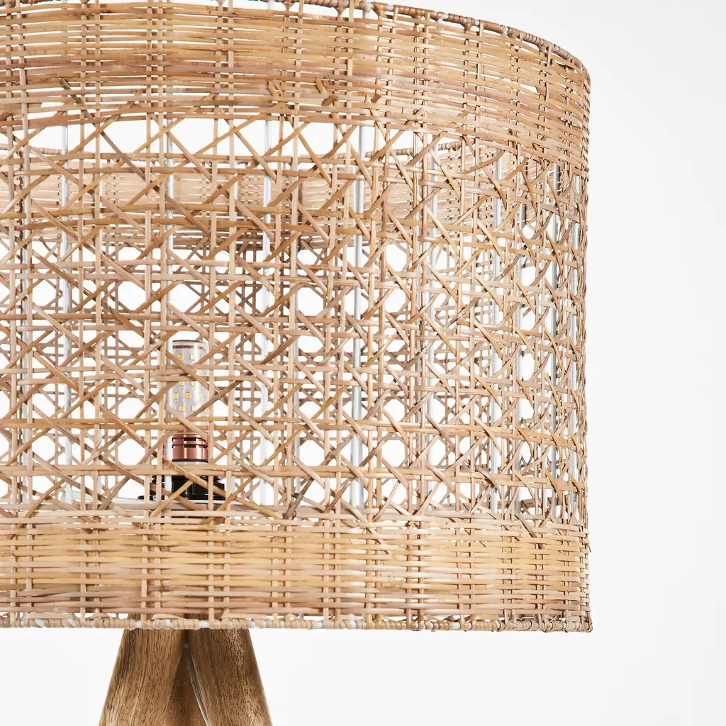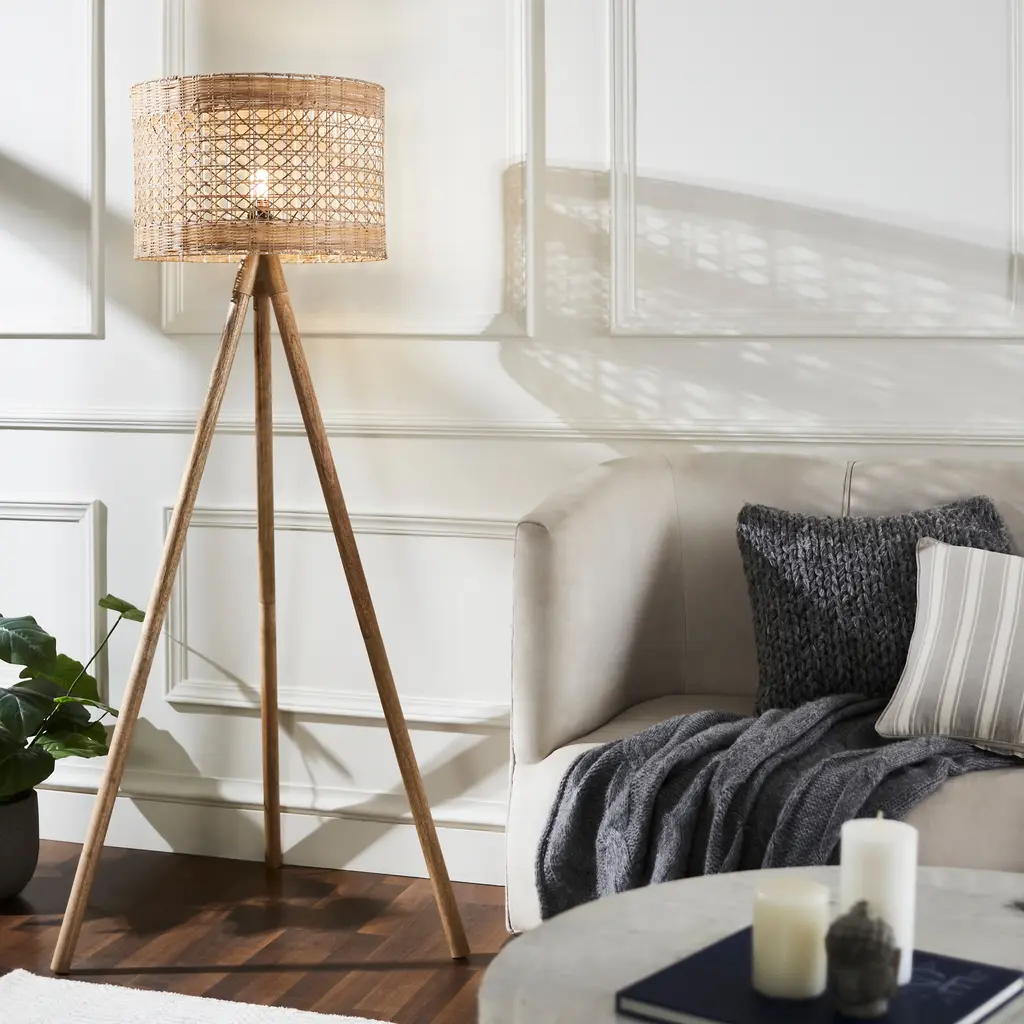 Perfect for bohemian or coastal-chic interiors, this Akroyd Floor Lamp transforms any room into a tropical paradise. Akroyd's rustic, natural wood tripod base is beautifully enhanced by its intricately woven rattan shade, making it a designer favorite.
