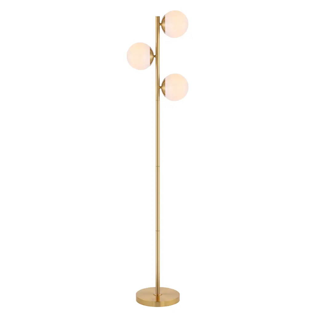 Brilliantly styled to reinvigorate any room, this Devlyn Floor Lamp beautifully blends Mid-Century chic with contemporary class. Devlyn's three white glass globe shades cast light in multiple directions to fully illuminate your décor while emanating a sense of depth, while its shimmering gold finish is absolutely glamorous.