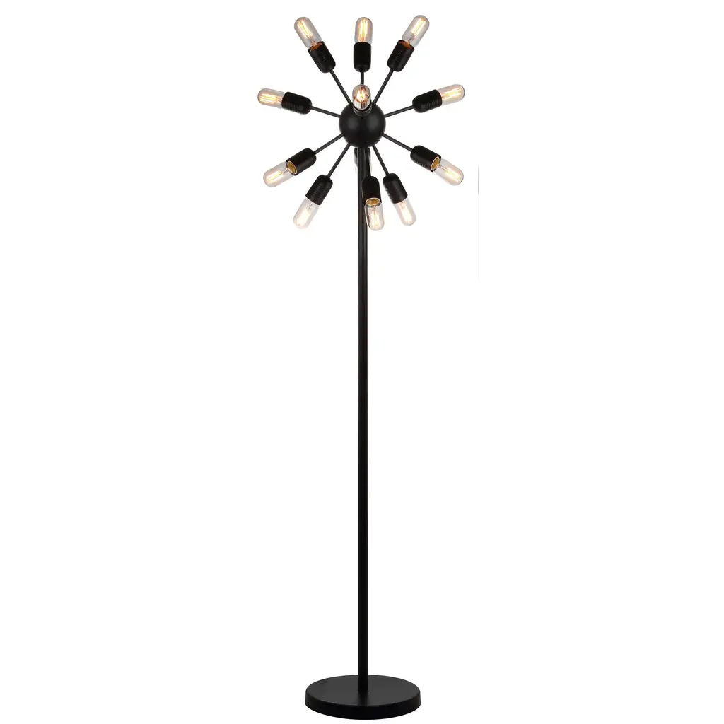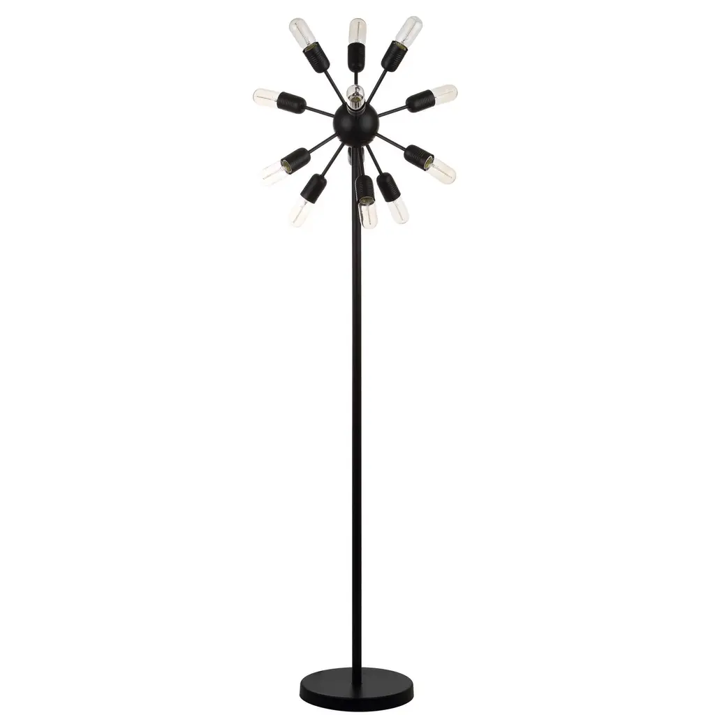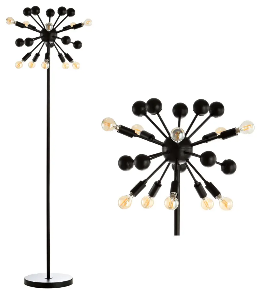 The industrial chic style of this contemporary floor lamp captures the spirit of the new UK boutique hotel created from a former dockside factory in Birmingham. Its rich black metal finish and gaslight glow bring retro vibes and urban soul to any space.Features:Number of Light: 12 LightsLighting Type: Floor LampBulbs Included, Energy EfficientCrafted of MetalLighting Shade Color: CreamHeight: 23 inches or moreSetting: IndoorLighting Style: ContemporaryColor: Black