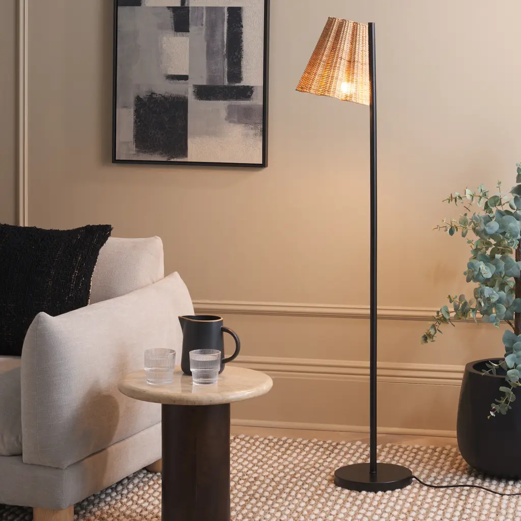 Illuminate your space with the Mio Floor Lamp, a stylish and functional piece designed to complement any room. This lamp combines the natural elegance of cane with the sleek durability of iron, presented in a sophisticated finish. Add this versatile lighting option to your home or office and enjoy the blend of practicality and aesthetics it provides.
