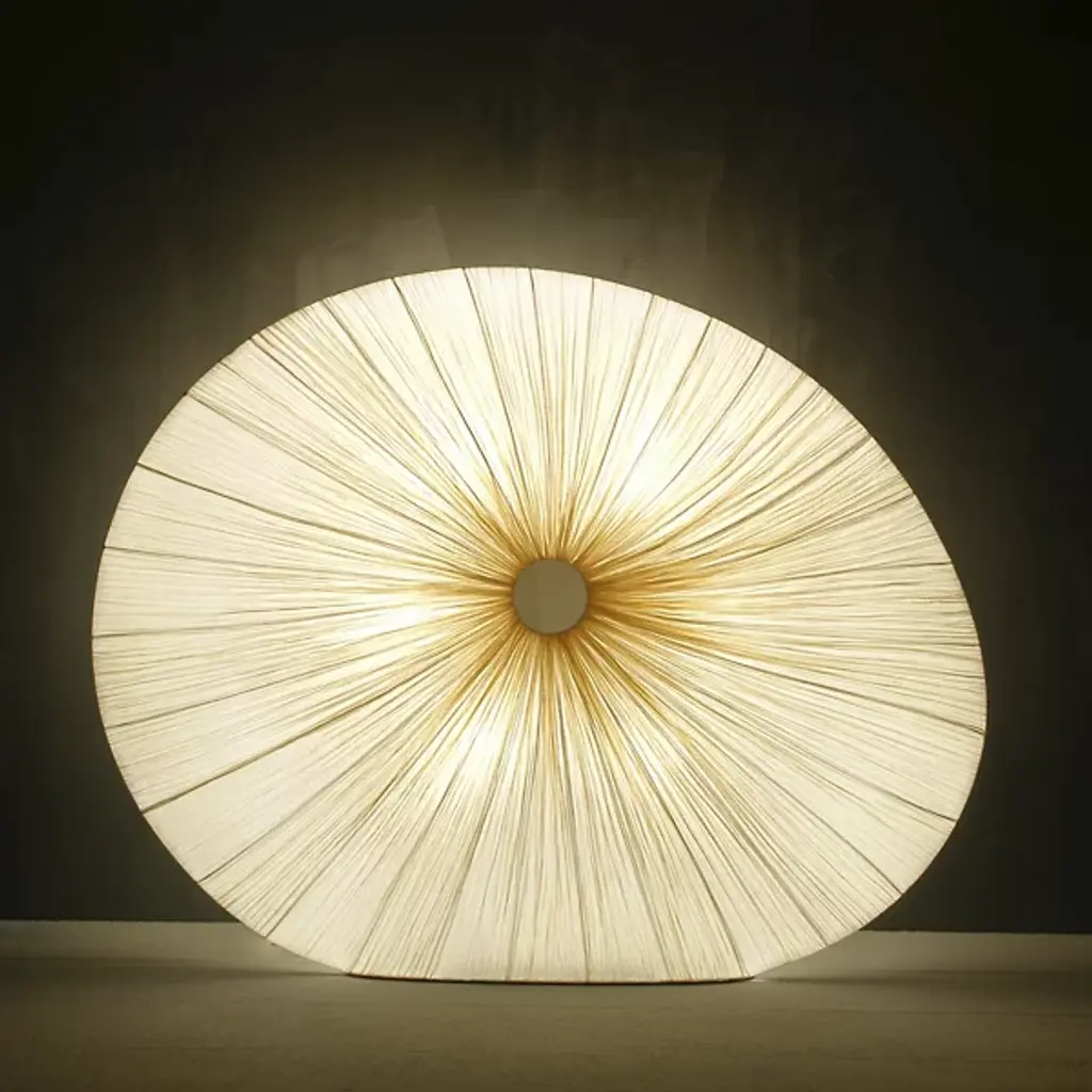 Art deco inspired lamp from the Orchestra collection. The Sahara LED Floor Lamp by Aqua Creations takes a rounded sculptural form and creates a halo lighting effect that transforms the mood of any setting. Utilizing dimmable LED technology to control light intensity, it features a handcrafted silk shade to produce evenly diffused light on its entire surface. Drawing inspiration from natural musical forms, modern sculpture, and architecture, this floor lamp is ideal for both residential and commercial applications.