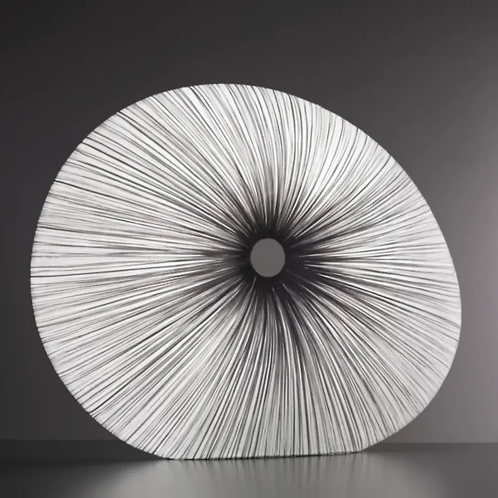Art deco inspired lamp from the Orchestra collection. The Sahara LED Floor Lamp by Aqua Creations takes a rounded sculptural form and creates a halo lighting effect that transforms the mood of any setting. Utilizing dimmable LED technology to control light intensity, it features a handcrafted silk shade to produce evenly diffused light on its entire surface. Drawing inspiration from natural musical forms, modern sculpture, and architecture, this floor lamp is ideal for both residential and commercial applications.
