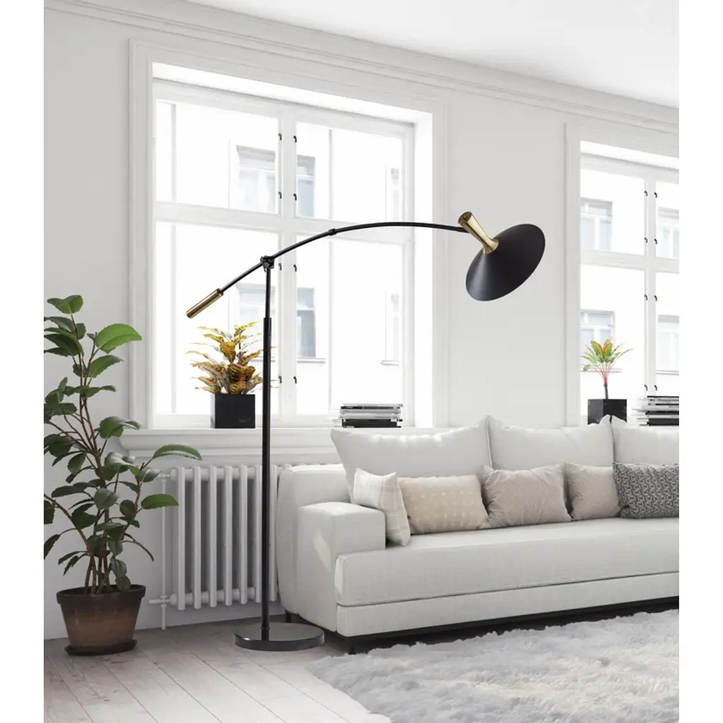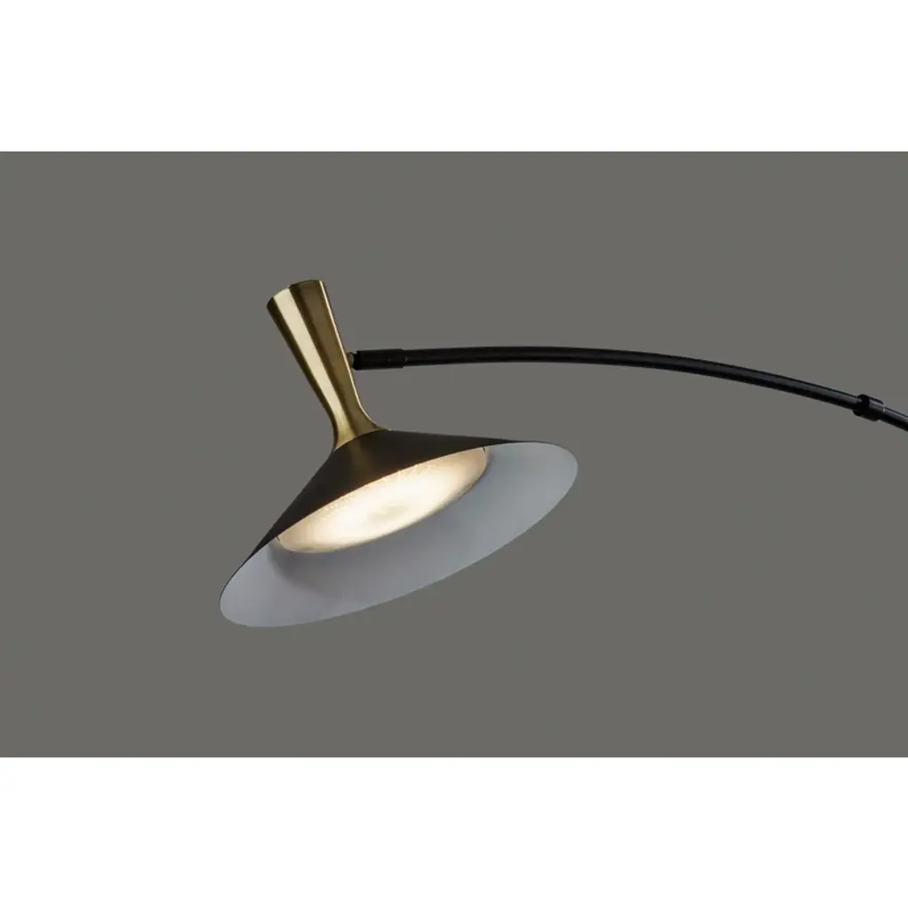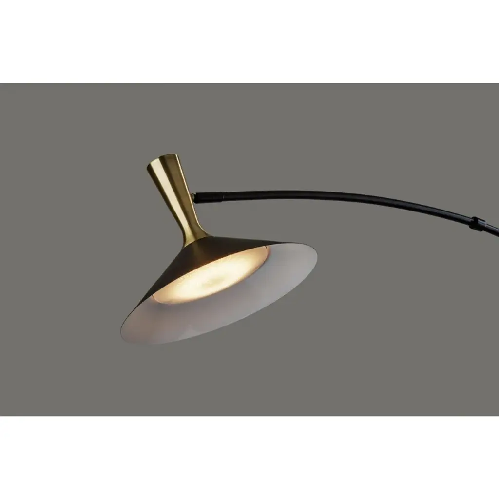 Illuminate your space with modern flair. This sleek floor lamp features a metal construction with a black shade, complemented by an antique brass accent. With adjustable height and a touch switch, it offers convenience and versatility. The integrated LED light provides energy efficiency and long-lasting illumination. Perfect for both residential and non-residential settings.