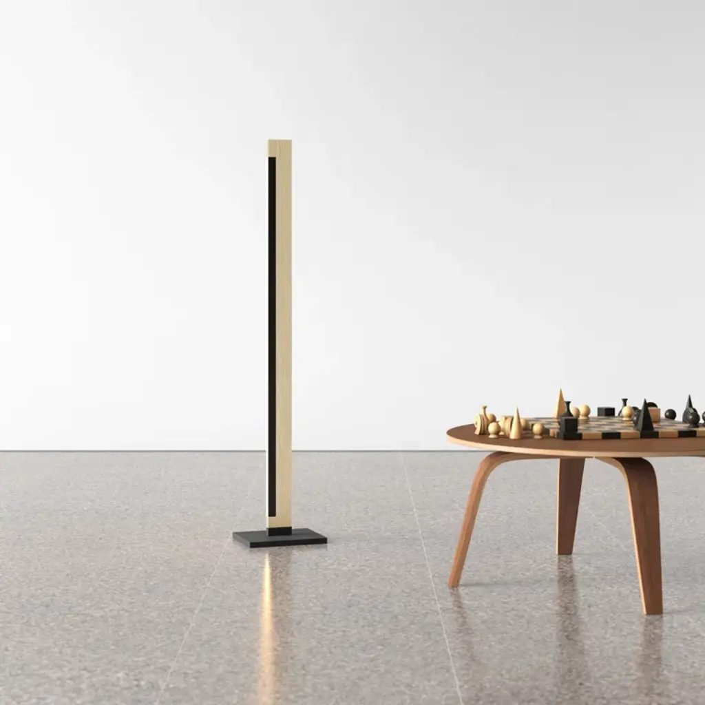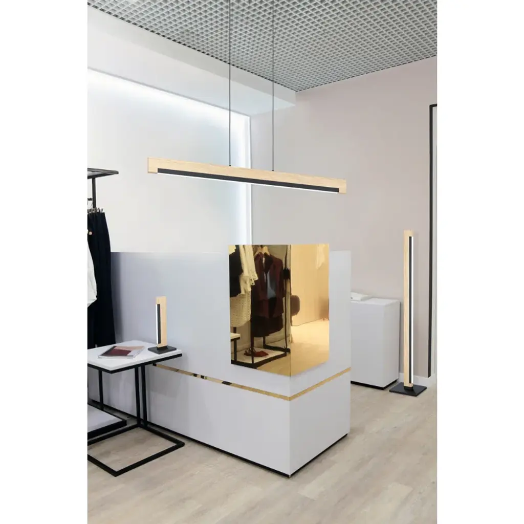 The Sally LED floor lamp by Eglo brings minimalist style to the home. The contrast between the black and the beautiful light colored wood gives this sleek table lamp a contemporary look with the integrated LED lighting.