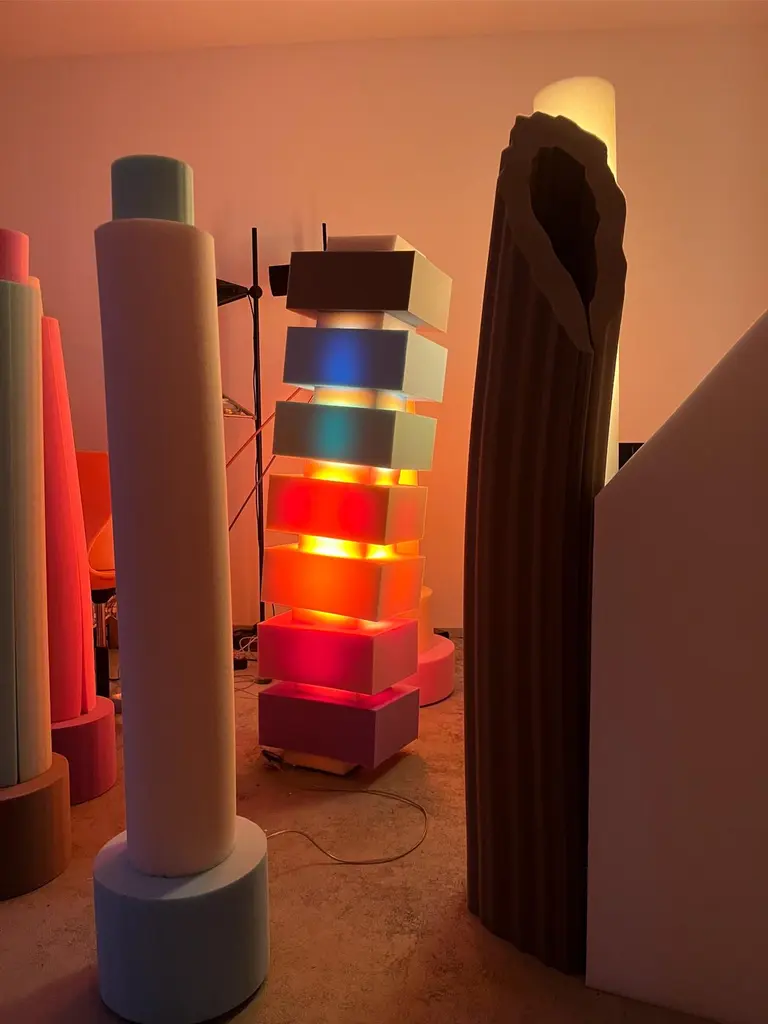Samantha Schuimlampen Floor Lamp by Sven JansseDimensions: W 36 x D 28 x H 140 cmMaterials: Treated Polyether FoamAvailable in different colour schemes.The practice of Sven Jansse (Rotterdam, 1987) operates along the edges of art, architecture, design and photography.By investigating themes such as textures, colour, scale and architectural typologies through abstraction or precise recreation, the projects aim to function as a mediator between our every day reality and a more dreamy, parallel universe.