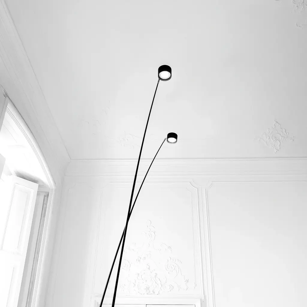 The Sampei LED Floor Lamp from Davide Groppi is a graceful and distinctive piece, designed offering a luxurious touch of sophistication to any space. The sweeping shape evokes a fishing rod, with a pivot atop a low-profile disc and a lamping that captivatingly radiates its warm light. Elevate your home with this elegant, arcing floor lamp, and luxuriate in the exquisite glow of its heightened stature. Highlights