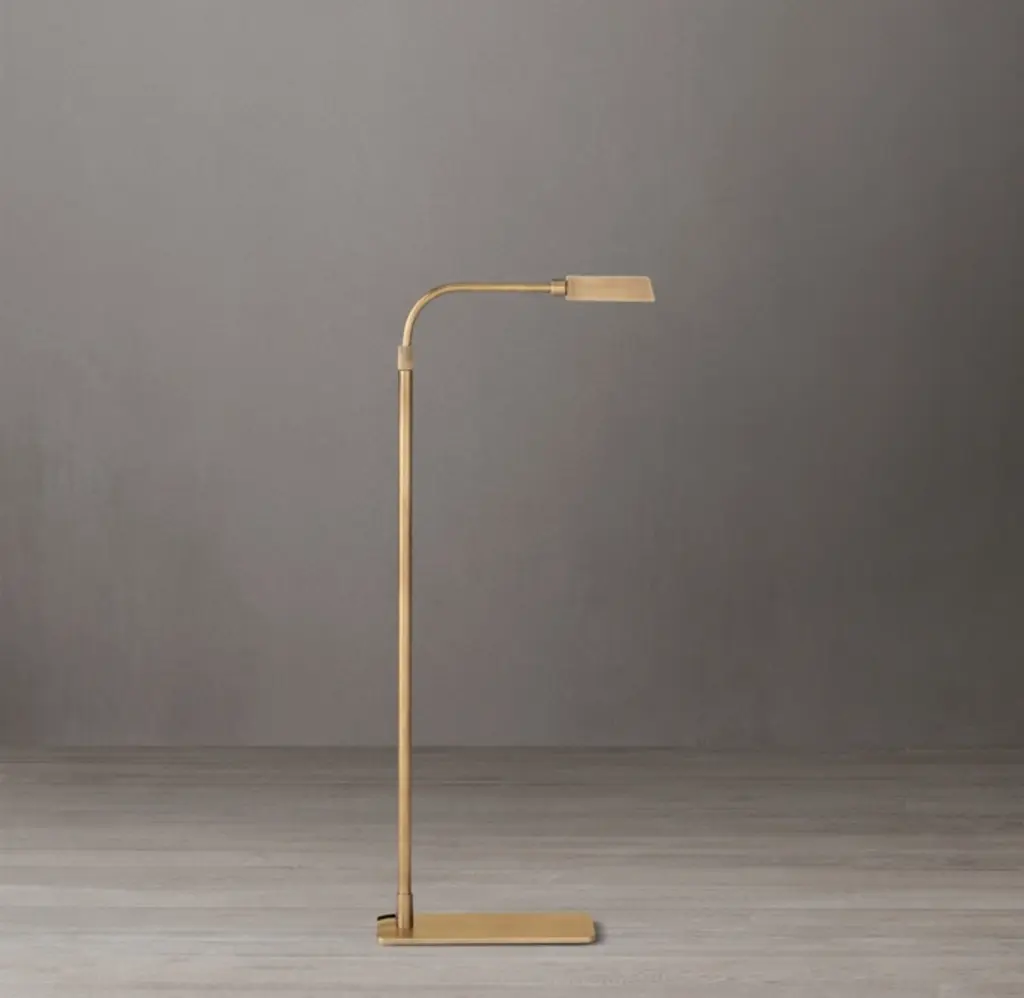 Designer Ian Fowler expresses a minimalist vision in the Sanders task lamp, handcrafted of steel. Rising from a sleek, weighted base, the slender, telescoping stem supports a cantilevered shade that casts a focused swath of light.