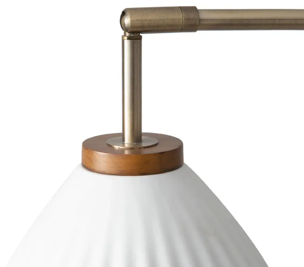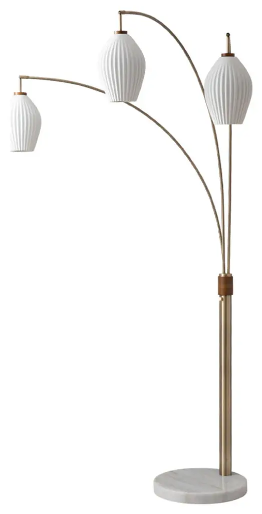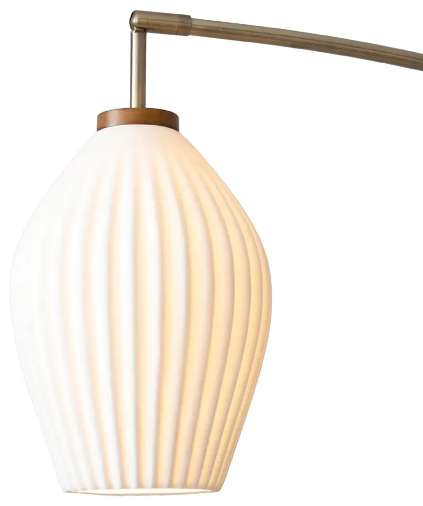 Santa Clara Bone Porcelain 3 Light Arc Floor Lamp -85", Weathered Brass & Walnut