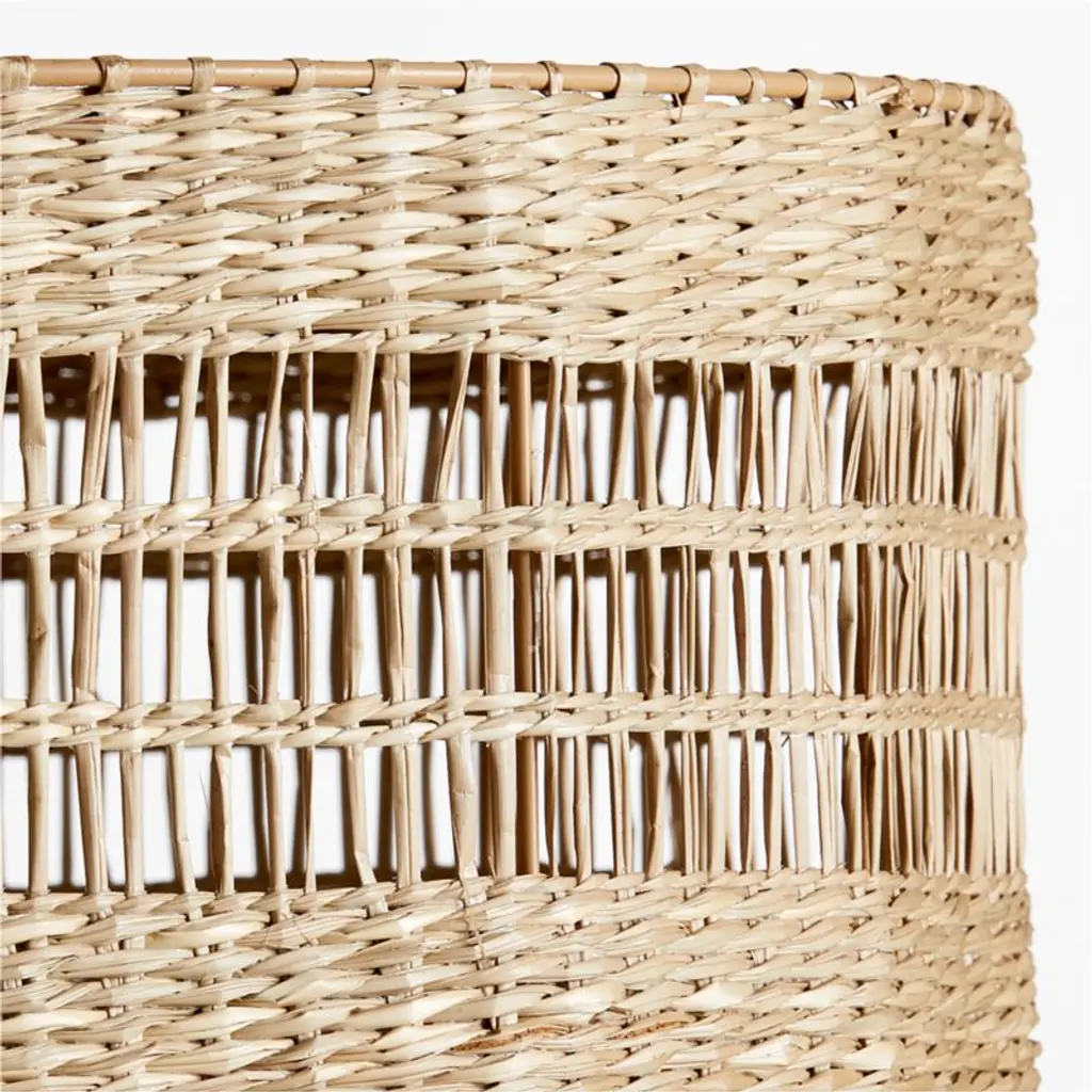 Our breezy, mixed-material floor lamp brings coastal cool to your living room. A tall cone of white plaster elevates with artisanal-like texture, perfectly complemented by the open-weave seagrass shade. We love the way the shade plays peek-a-boo with the bulb and casts patterned shadows on the white base. Our Santorini floor lamp is a Crate & Barrel exclusive.