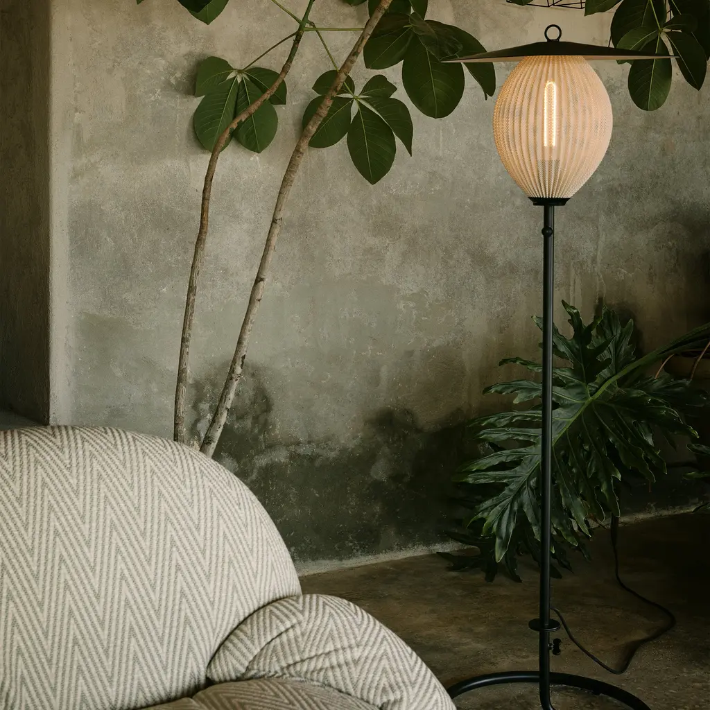 Building on the Satellite Collection of whimsical, modernist sculptural lamps, Satellite Outdoor Floor Lamp is GUBI’s first lighting designs created specifically and certified for outdoor use – remaining true to the original design concept while being a fitting tribute to Matégot’s well-established interest in outdoor living. The Satellite’s cap is constructed from aluminum and the shade from stainless steel, which is pressed and bent to Matégot’s signature shape before powder-coating. This protects the lamp from rust and the impact of weather, allowing the lamp to be permanently installed outdoors with minimal maintenance. The electronic components are specially constructed to protect them against the elements, and the LED bulb is housed within a watertight polycarbonate cover that keeps it safe without disrupting the light emitted. Features