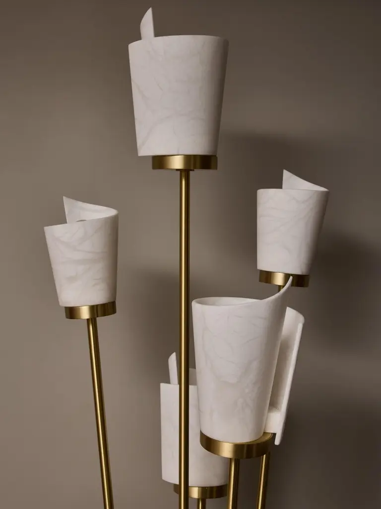 Satinated Brass And Alabaster Spiral Shades Six Arms Of Light Floor Lamp