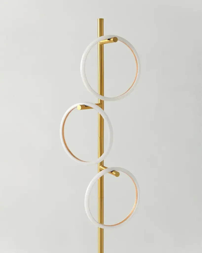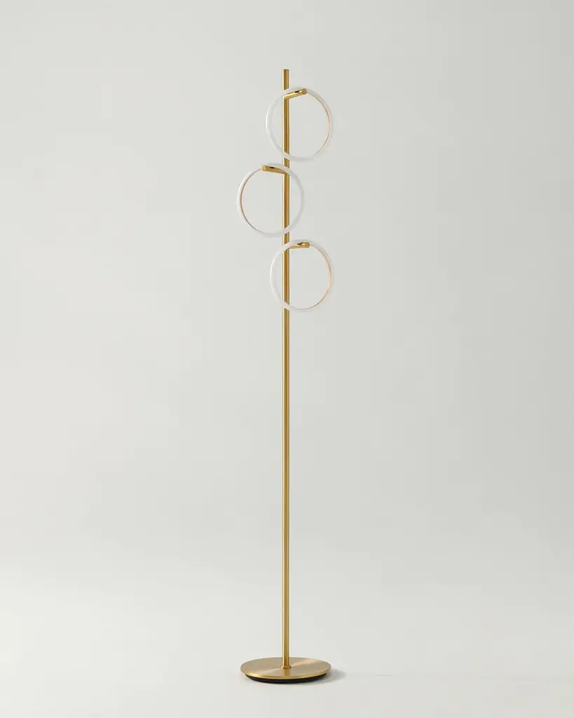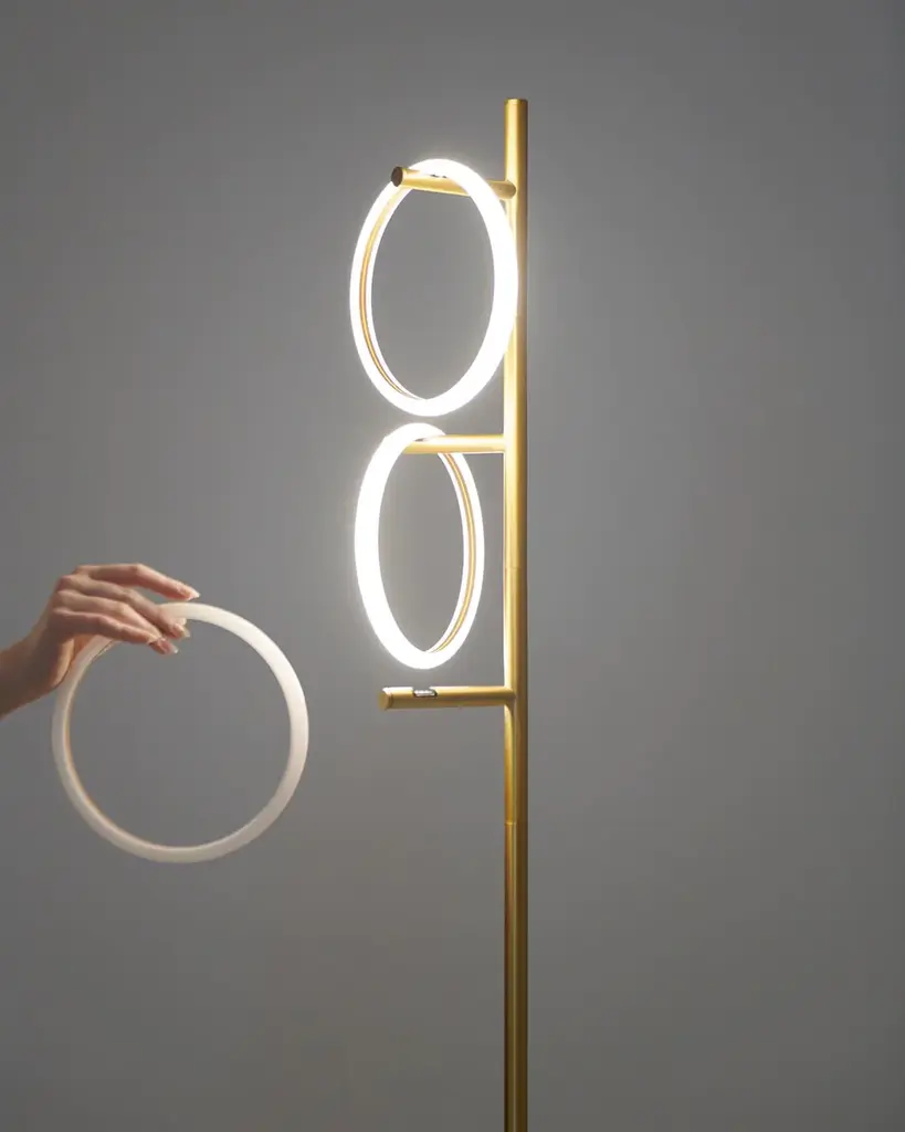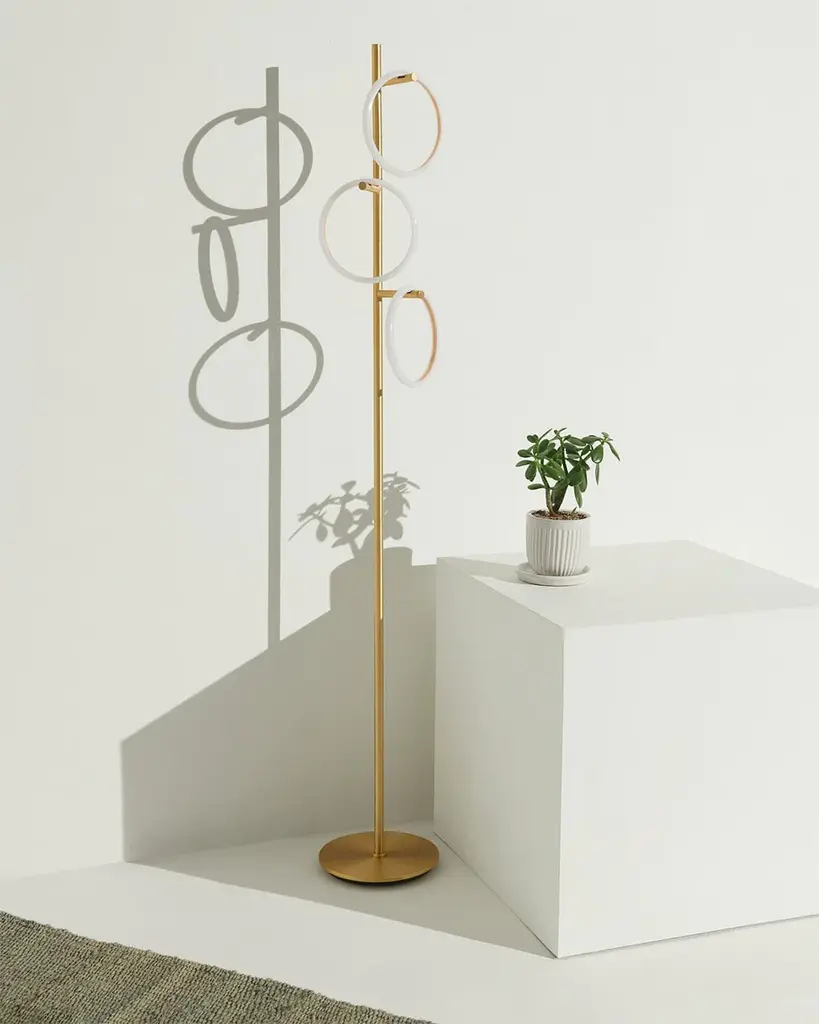 Meet our TikTok star, the Saturn Floor Lamp, a simple and elegant lamp with a modern touch. Acting as a centerpiece in your home, this ring floor lamp features a simple stem and ring light design. The 3 ring lights are detachable and illuminate a soft white glow when placed on the stems. They’re made of durable plastic rather than glass that might shatter — but don't play ring toss with it.