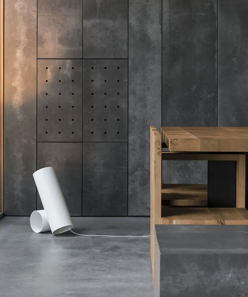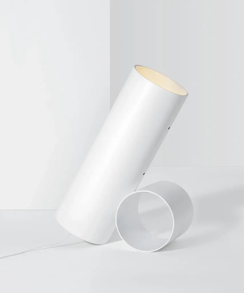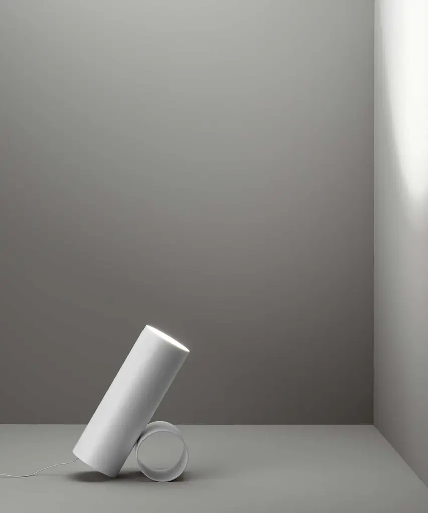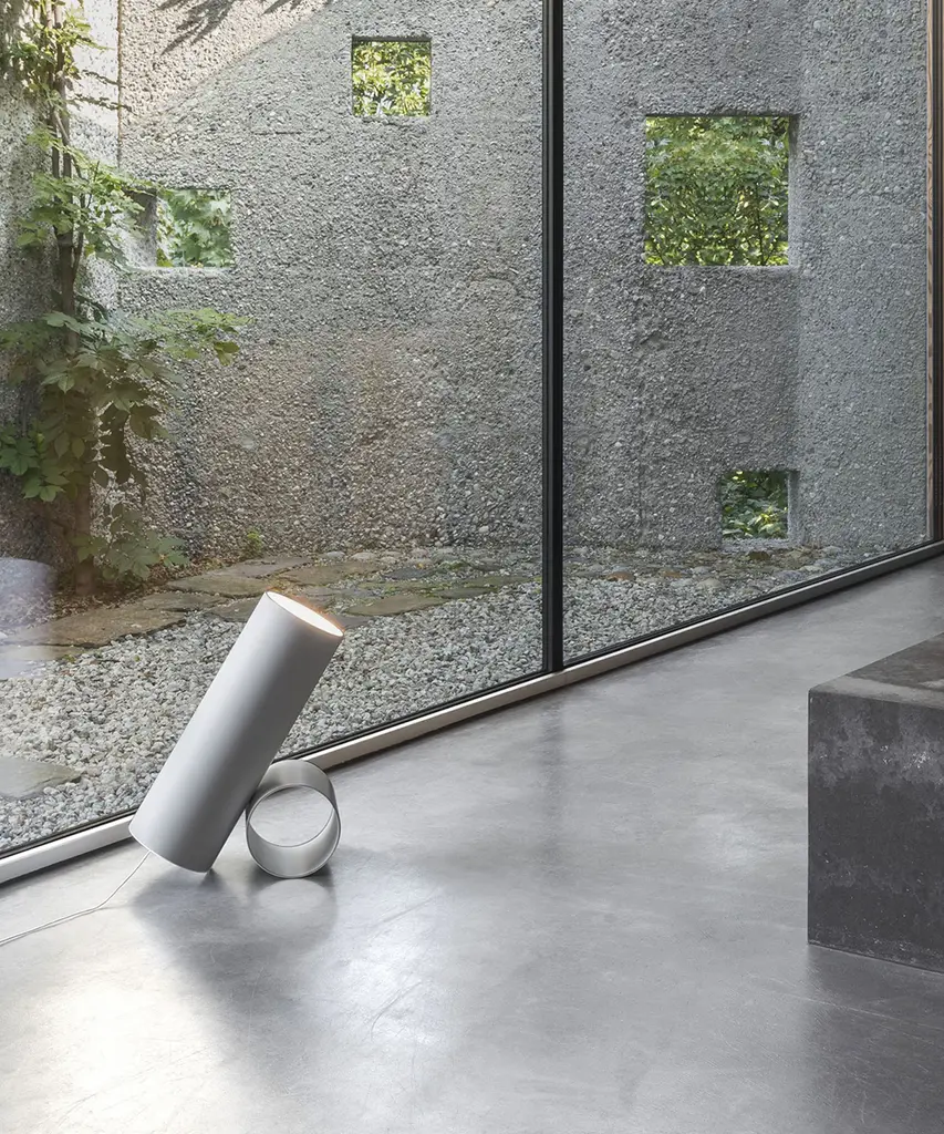 A new geometric fixture designed by Japanese studio Nendo for FLOS is a sculptural piece that explores the concept of balance. Two independent cylinders, resting together at a perpendicular angle, provide a brilliant light source that shines up from the floor. The Sawaru LED floor lamp can be used to supplement other fixtures in a room to create a beautiful layered lighting effect. Ideal for drawing attention to a piece of art or interior feature and illuminating an under-lit corner or hallway, the modern LED floor lamp's strong visual impact adds an artful, modern touch to a space. Adjusting a pin in the extruded aluminum base moves the directionality of the light to three different angles-25, 40, and 60 degrees. Additionally, the two components can be separated and the body of the floor lamp installed directly on the floor without the base. FLOS Sawaru is available in either a galvanized or painted finish and it comes in four colors: black, white, bright gold, or blue-gray. This is our first-floor lamp with an advanced dimmer pedal on the power chord that can control both light intensity and color temperature. Inspiration Nendo, established in 2002, is known for the exciting minimalistic products of its founder and chief designer, Oki Sato. With surprising forms and clever details, Nendo overturns a user's preconceptions about what an object should be or look like. The Sawaru floor lamp is an excellent example of the studio's ability to reimagine the products around us. Can two cylinders rolled together make a floor lamp? Sato proves that the answer is yes-and his unexpected union of these basic geometries offers a glimpse into the thoughtful mind of this talented creator. This authentic design is produced in Italy exclusively by Flos.