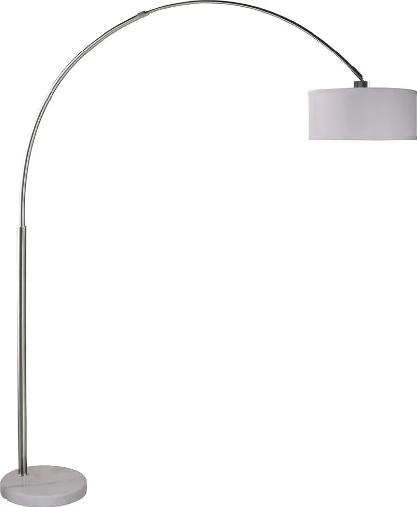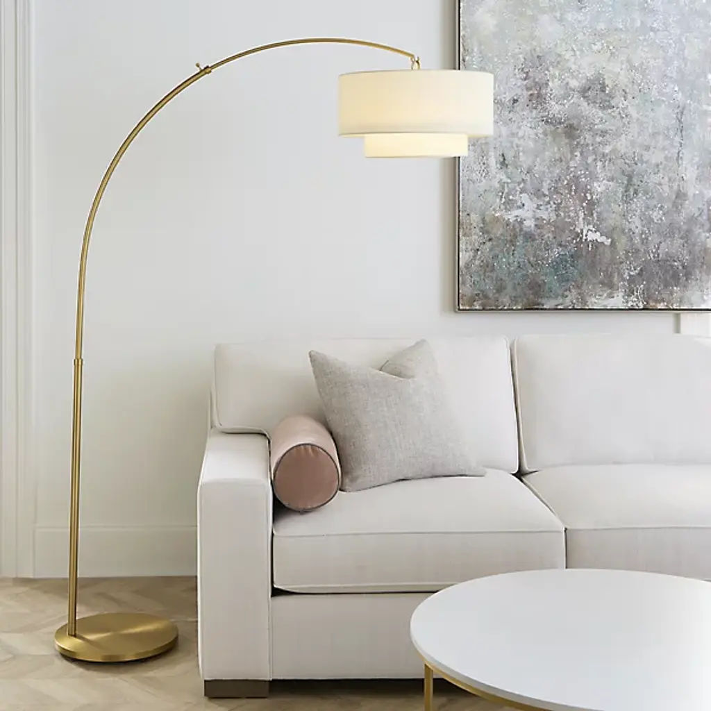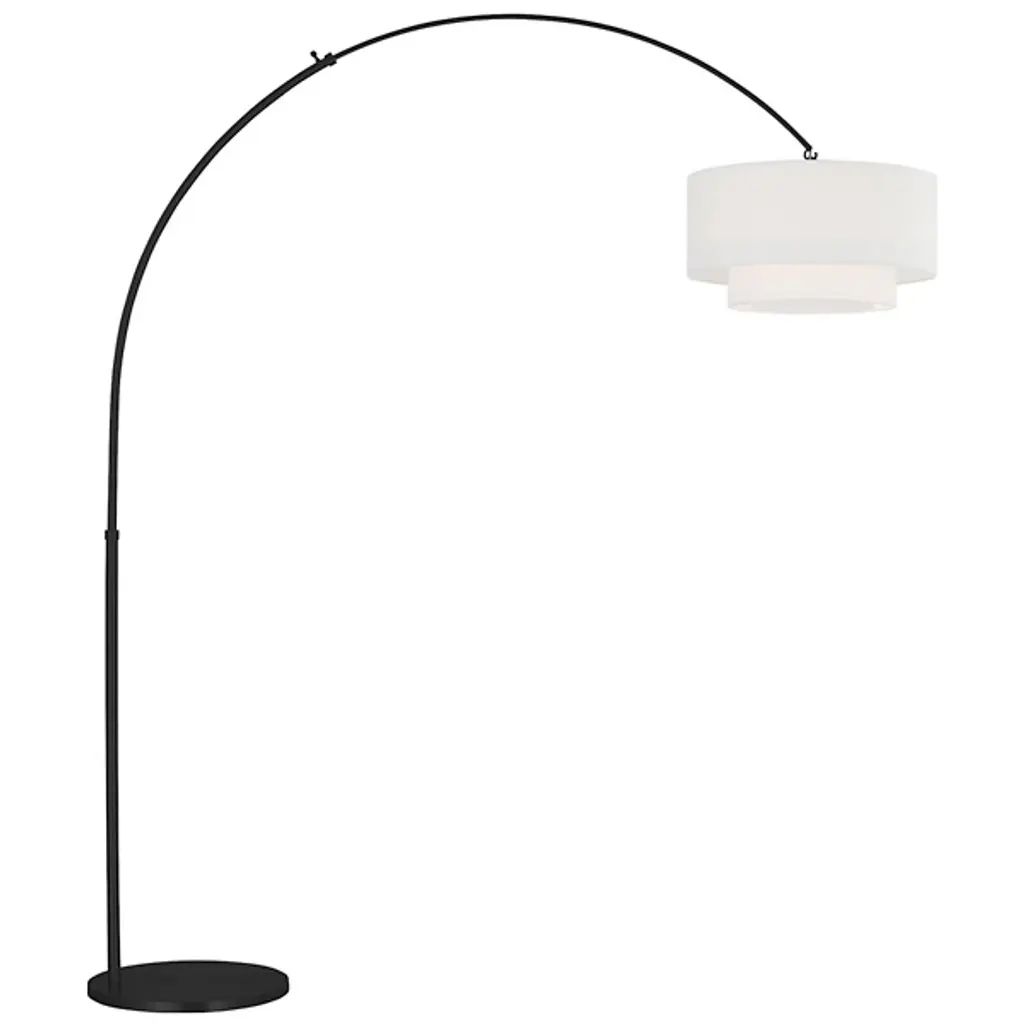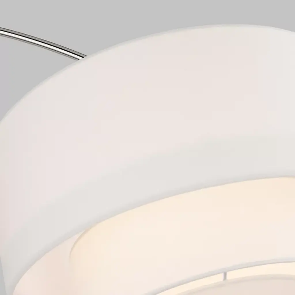 The Sawyer Arc Floor Lamp by Visual Comfort Studio, formerly known as kate spade new york, brings some elegance to spaces with a design inspired by whimsical geometry and playful lines. A gracefully arched arm is anchored by a smooth, circular base and supports a crisp, classically styled set of layered shades that reach artfully out into a room for a modern, minimal look. These shades help shape and softly diffuse a welcoming layer of illumination onto surroundings as they add a sophisticated touch to the look of this tailored floor lamp.